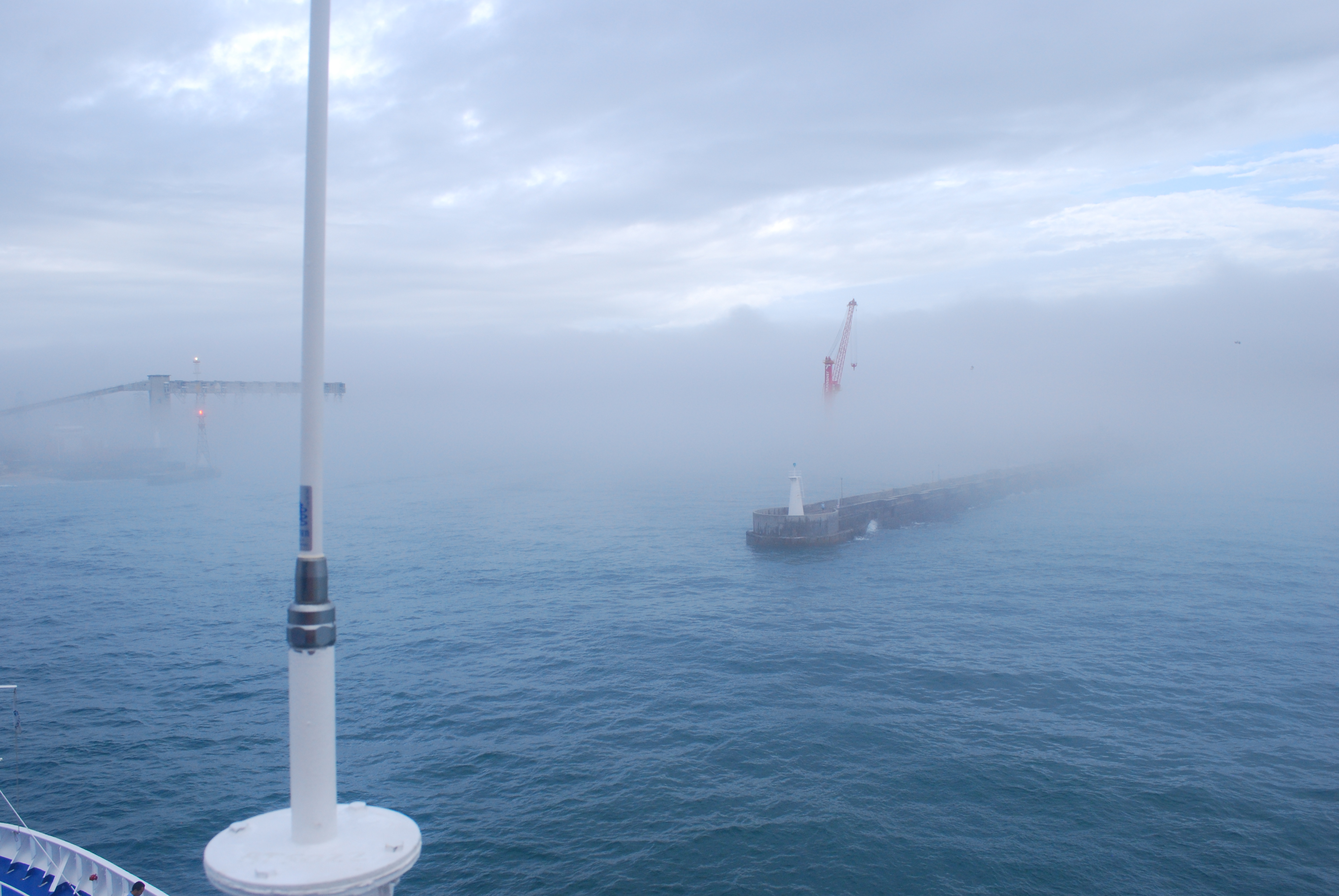 East London coming into view through the fog, aboard the Silver Wind in South Africa.