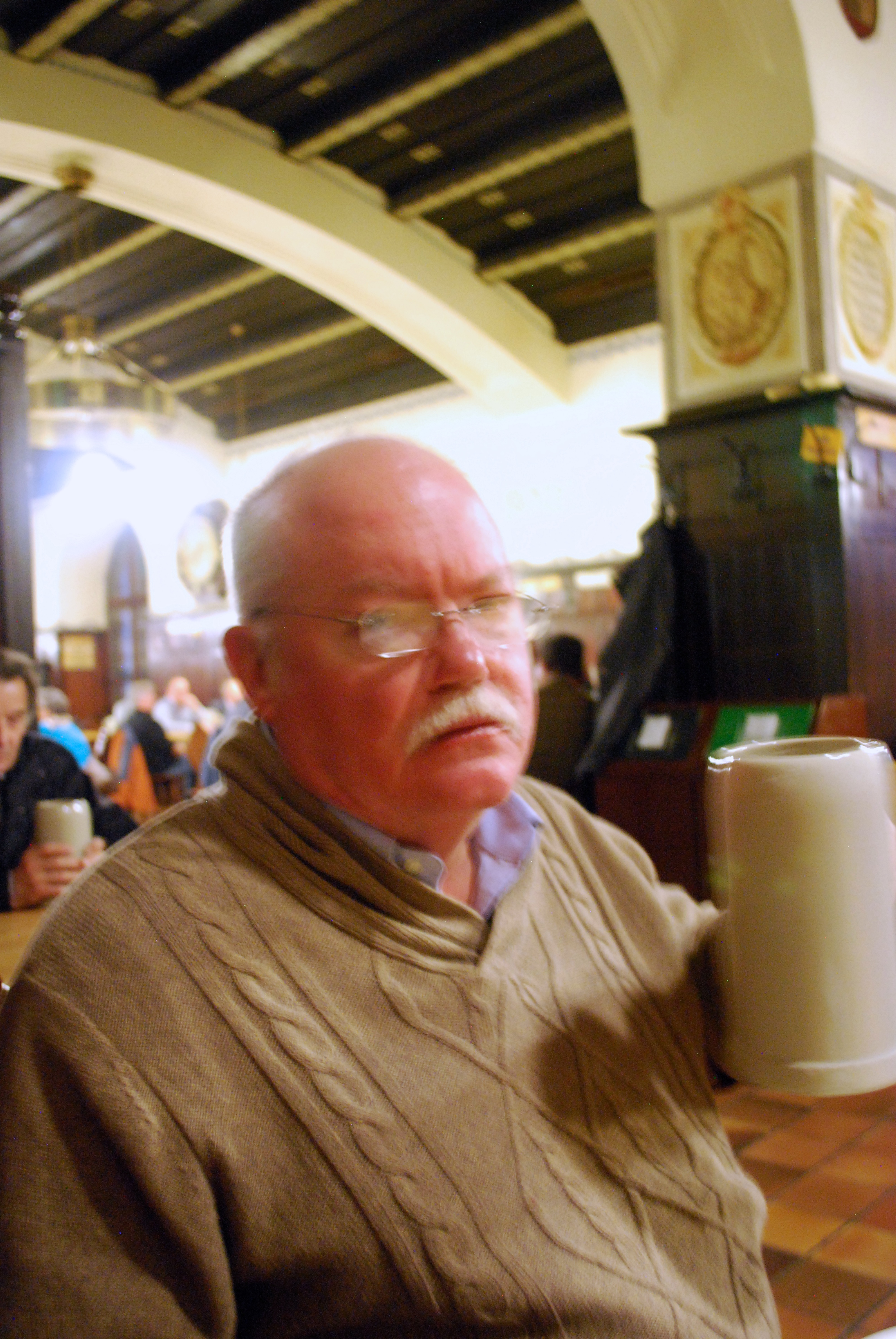 This photo gives you a better look at the arched wood ceiling. Check out the beer mugs on the cart. Boris had three of the large ones.