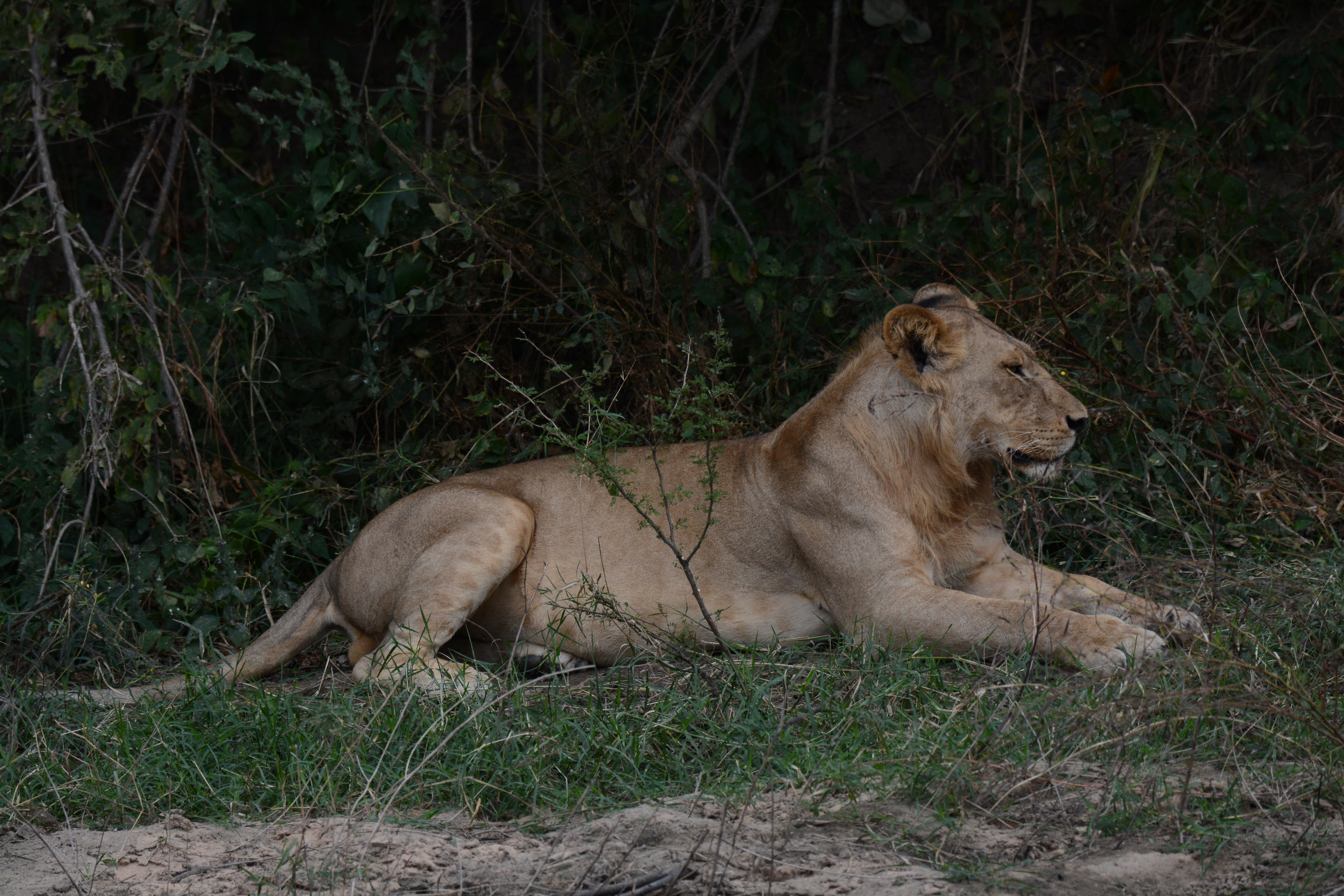 Frank also pointed out that his mane was beginning to come in and with binoculars or a zoom lens you were able to see it. We were later able to move a little closer, about 20 feet away and you could really see the mane. The young male got some water from the Ruaha River, but other than that they just lounged around and moved up and down the river bed to find a more comfortable spot to doze. Of course at this point we were getting to the heat of the day.
