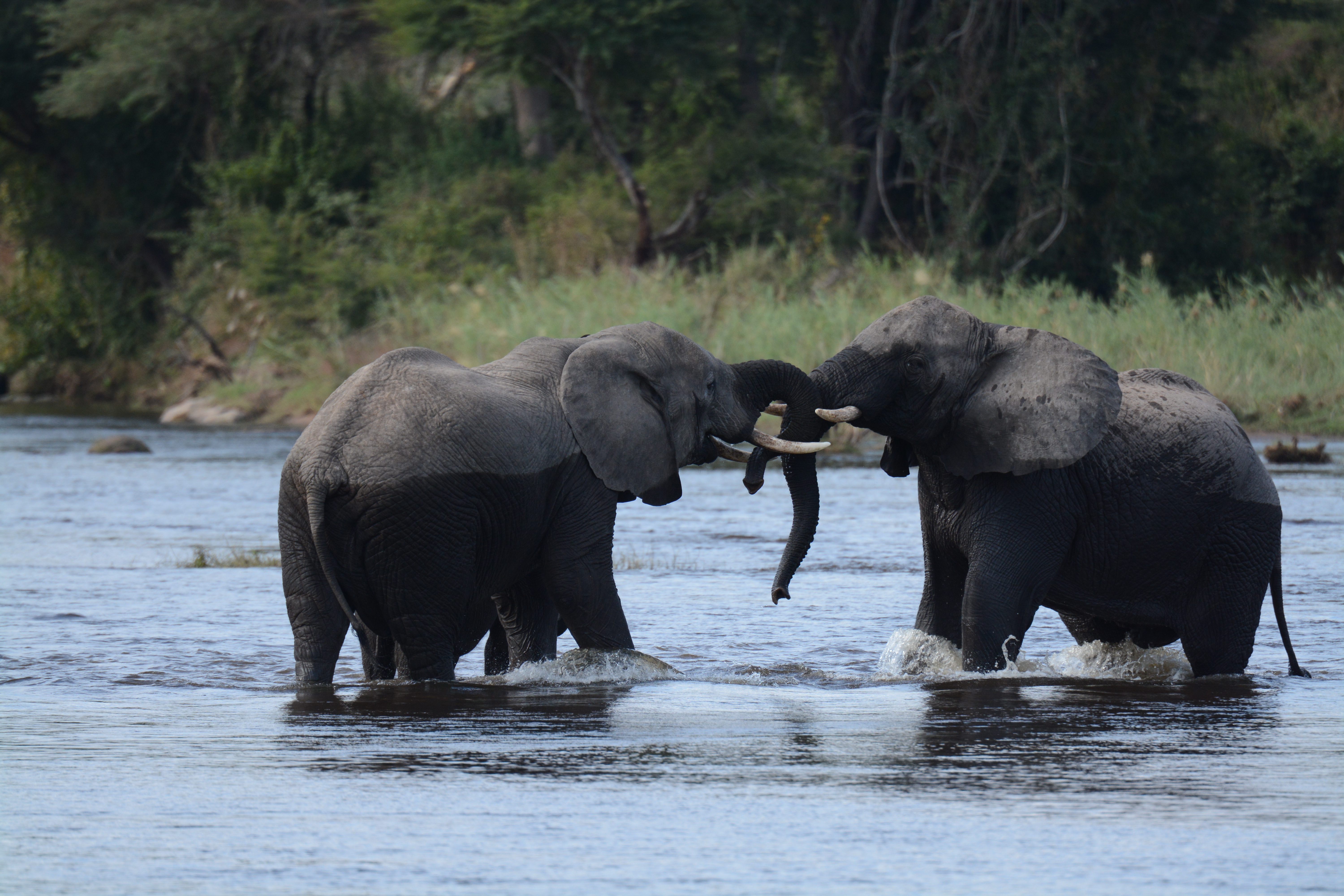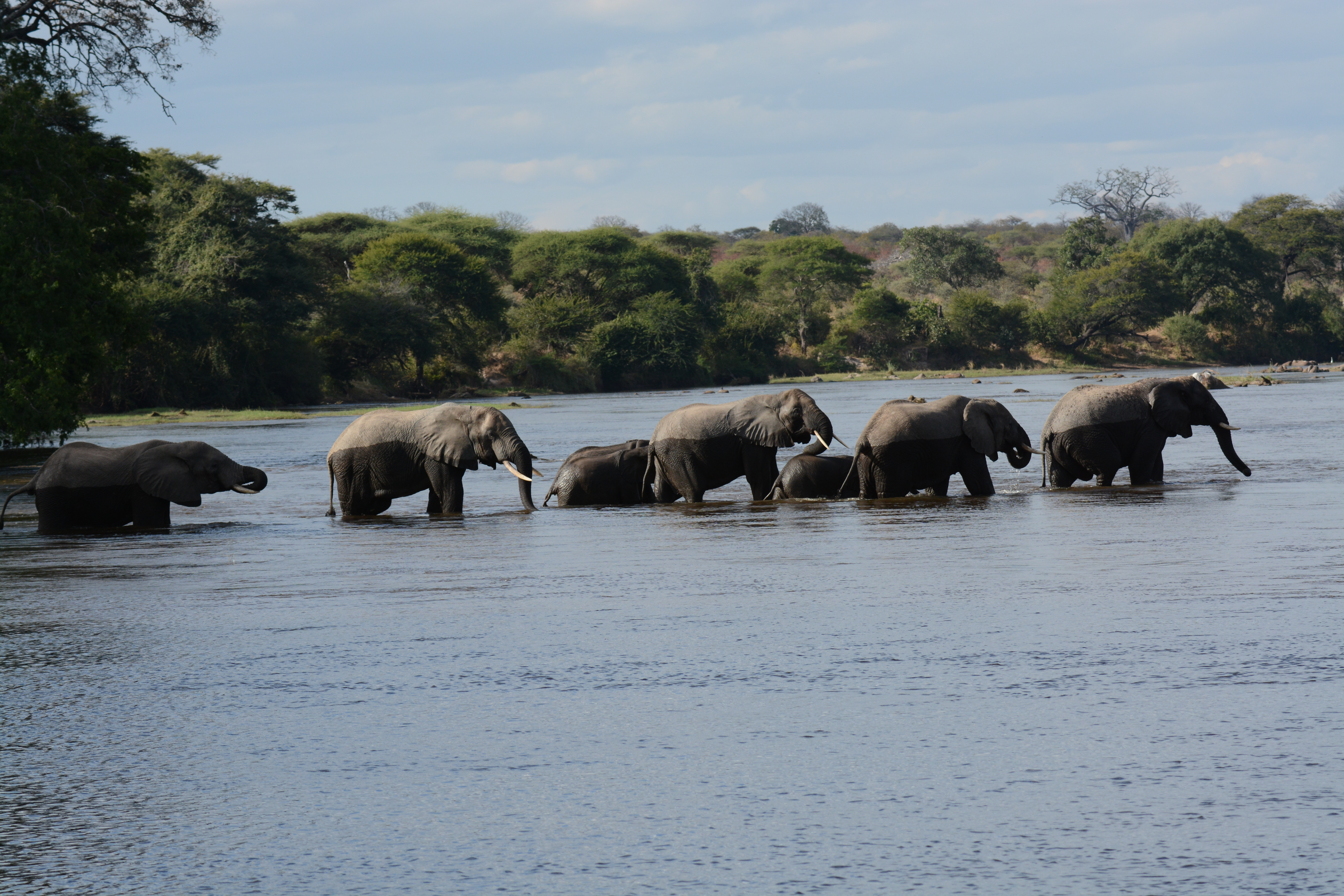 The matriarch led them into the water. While the little ones would completely submerge themselves, you could see the waterline across the larger elephants. We saw two play-fighting with their tusks and trunks. They used the crossing to drink, bathe, and play in the river.