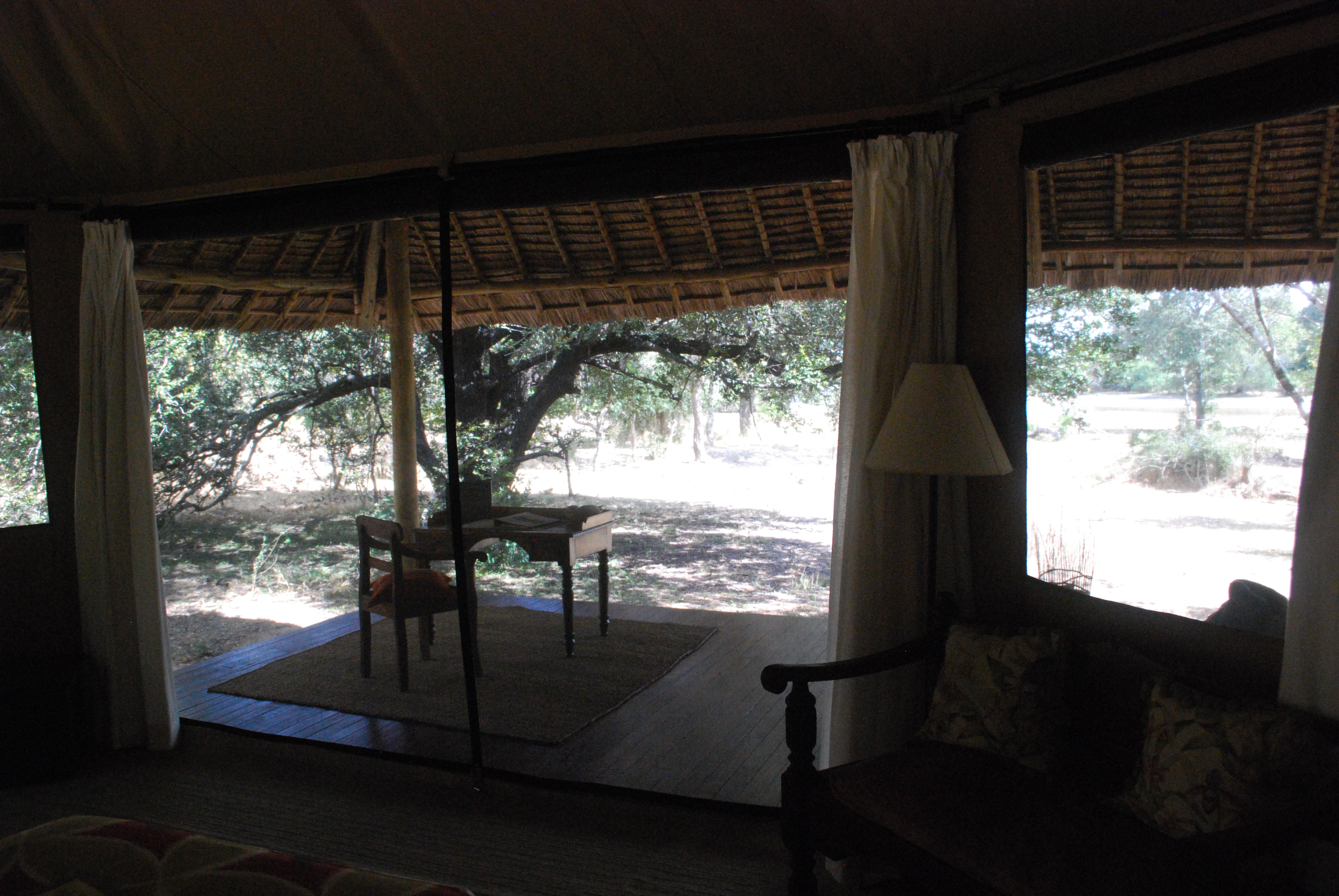 Our new tent felt much more open and had big porches on both the front and back. You can’t see it in this picture, but Donna and I were both thrilled to find we had a ceiling fan at this location where it is really needed. Siwandu, Selous Game Reserve.