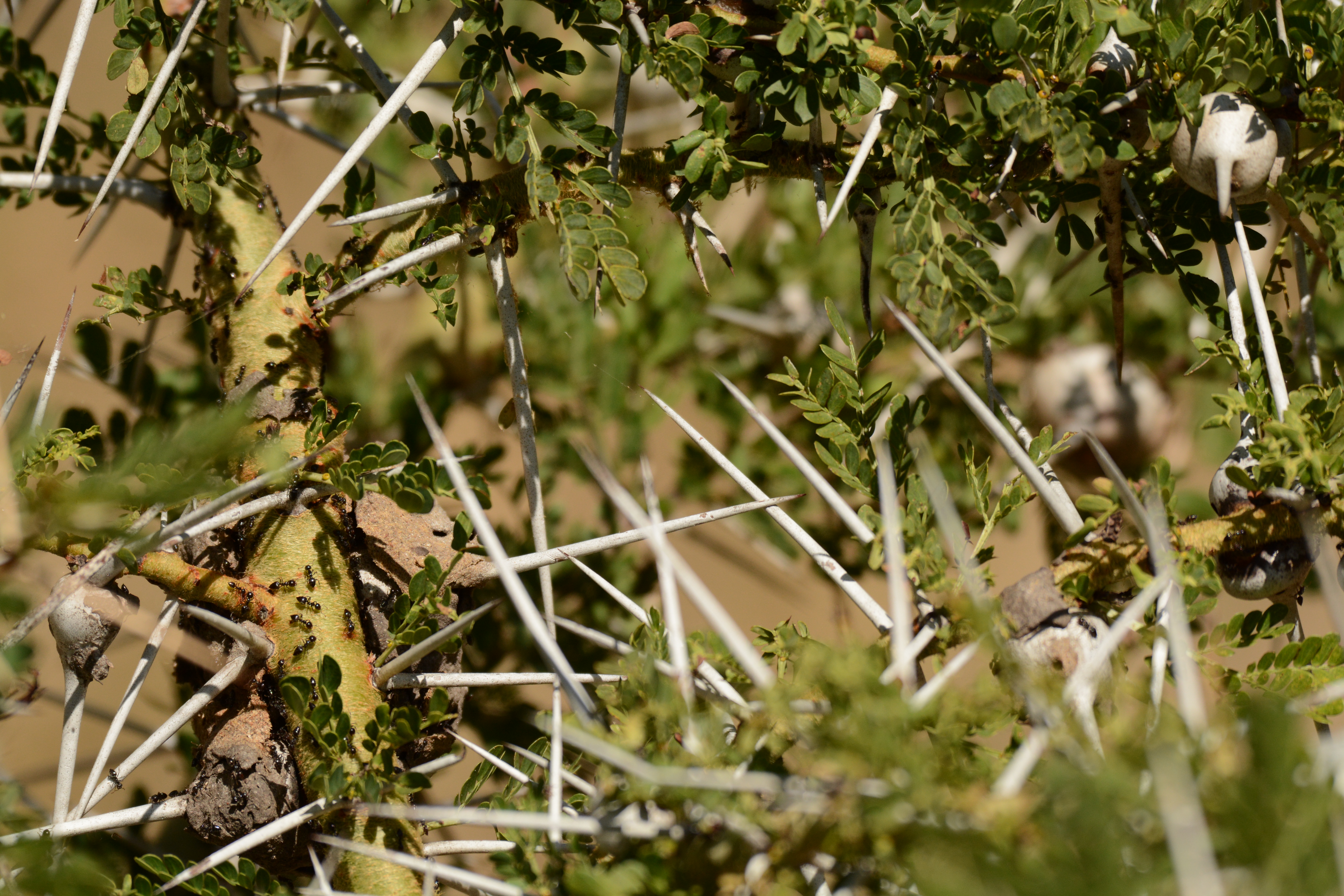 We found some animal bones along the shore and Zach pointed out the strange dried balls of palms that result from the elephants chewing on the palms. (Kind of an elephant fur ball.) The elephant only digests about 65% of what it eats. This is why the drivers avoid the elephant dung on the roadway. Elephants eat all of the Whistling torn acacia. The in tact thorns are in the dung and will blew out a tire if the jeep is driven over it. The whistling thorn acacia, which get their name from the gall at the end of each thorn that has holes that result in the whistling sound when the wind passes by. This plant also has a unique defense mechanism. Black ants enter the plant through the holes and live inside it, eating the sugary sap it produces. If an animal tires to eat the plant, the ants come out an attack, biting and crawling into the eyes and noses of the animal. It doesn’t bother the elephants that eat all of the plant, but the mother elephant will keep the unknowing baby away. Only one ant in their trunk disturbs baby elephants. They begin thrashing the trunk and can cause brain damage.