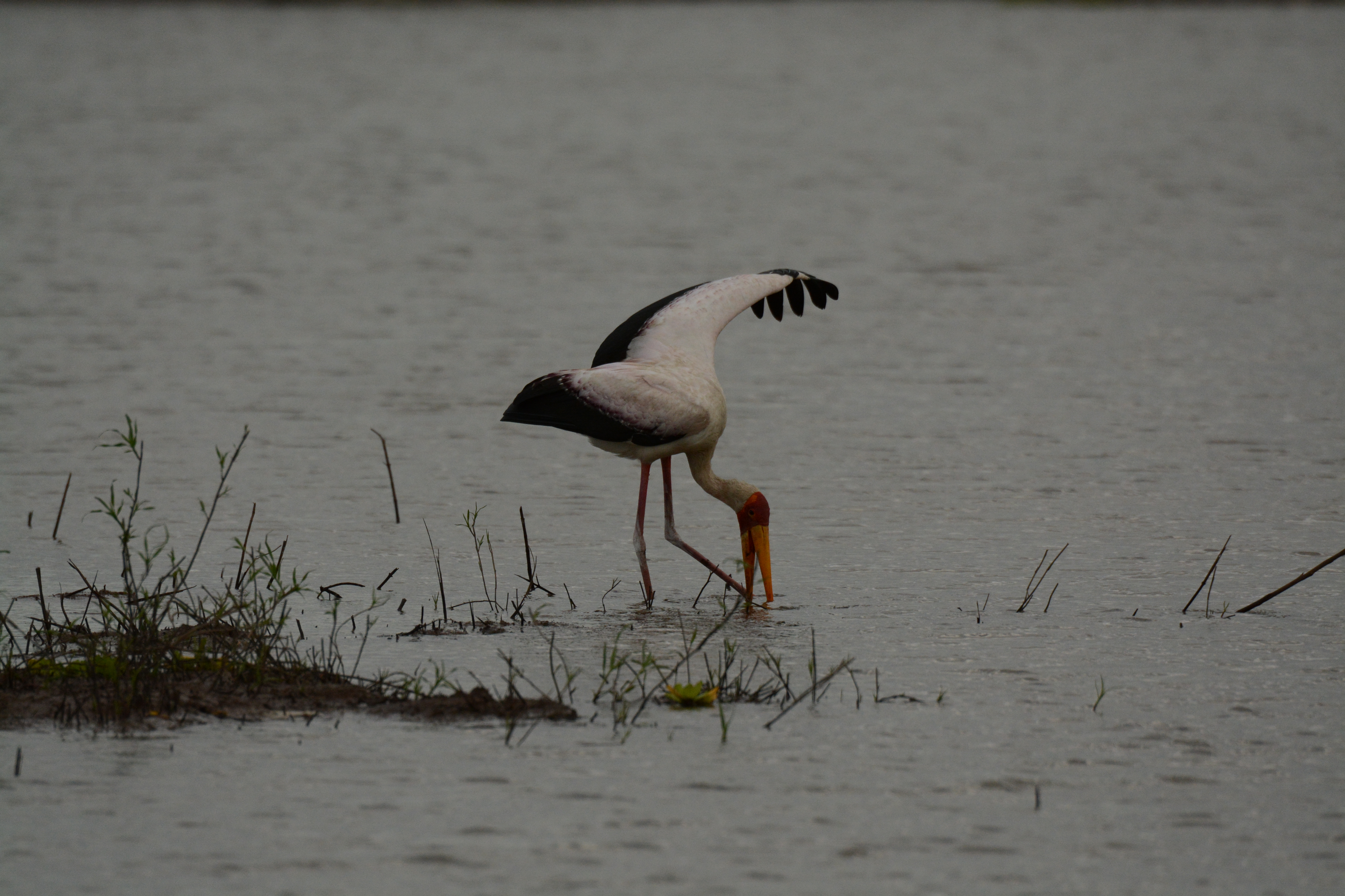 After lunch I enjoyed the pool on this hot day, but was surprised when it started to rain. We sat in the lounge with Reed looking at some pictures that Liz had taken and discussing photo taking strategies. When the rain stopped, I headed back to the tent to get dressed for the afternoon boat tour. Not everyone was excited by the selection, but the plan was to spend more time along the shoreline in the hope of seeing animals come to drink. Perhaps the rain had kept them away, but we only saw a mud boy, a single older male cape buffalo that was now on his own. Like they did with the elephant, the birds followed his footsteps and ate the insects in the mud that had been disturbed.