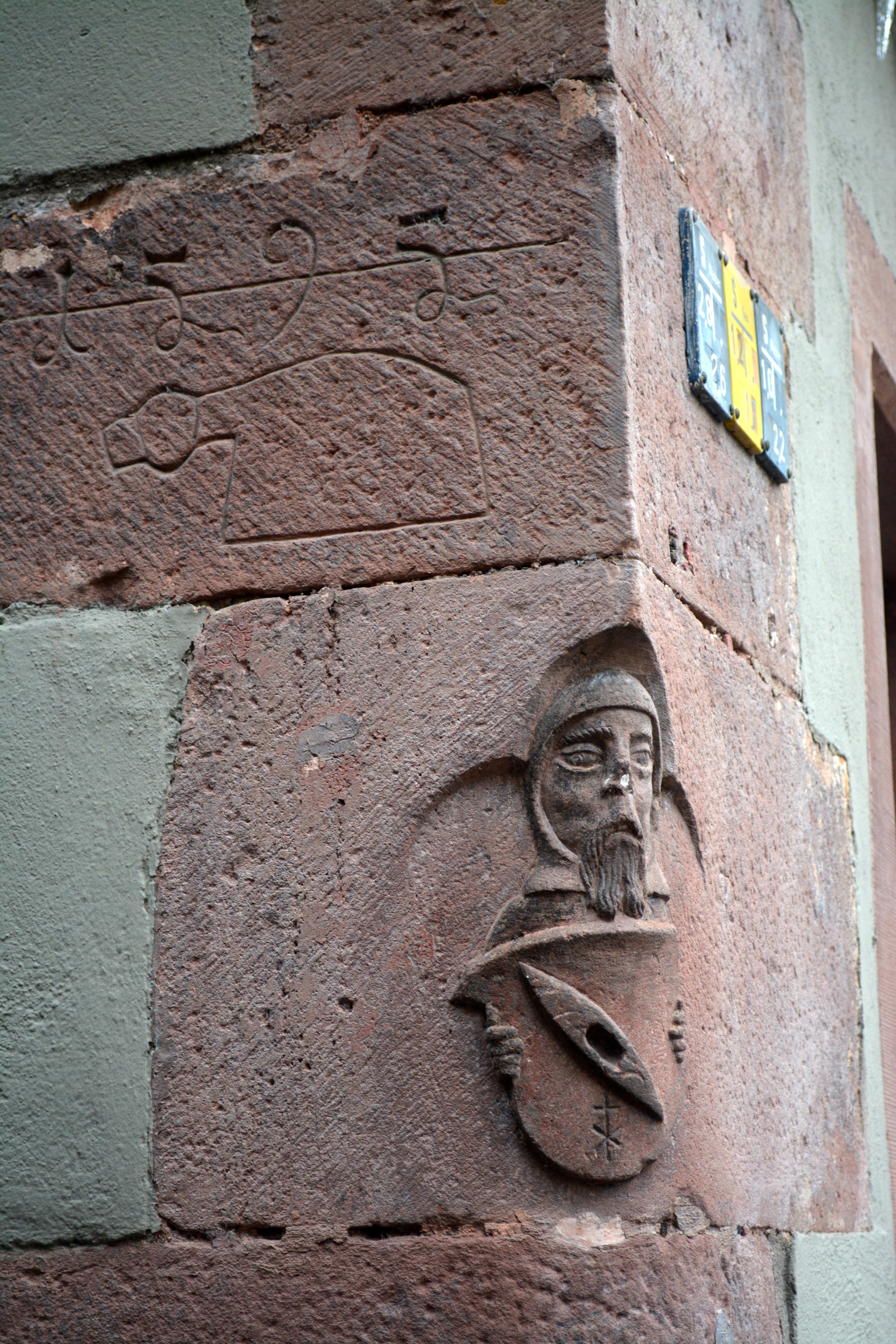 Like other medieval cities, portions of the city walls remain. Wertheim citizens cleverly converted the walls into shops, homes, and other structures. We stopped first at the Pointed Tower, now leaning due to the extensive flooding. Even small Wertheim has worked to acknowledge its further Jewish presence, outlining the location of a former synagog and marking the building and streets where former Jewish residents lived.
