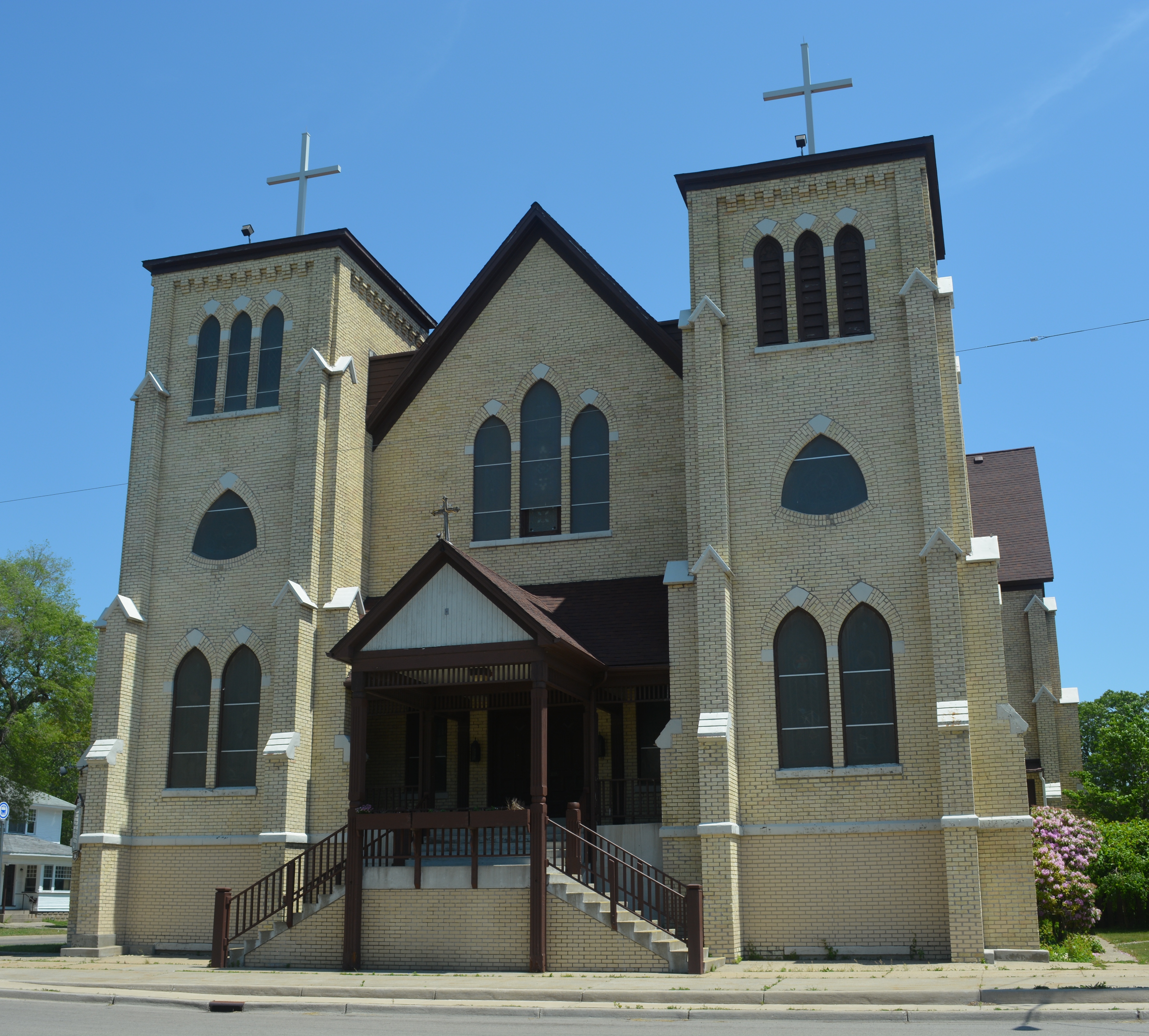 St. Jean Bastiste Catholic Church in Muskegon, Michigan founded by French immigrants in 1883. Due to changing neighborhoods and a lagging city economy, the church, which now only has a Spanish language mass on Sunday, may have to close its doors. If so, the Spanish mass will move to nearby St. Mary’s founded in 1889.