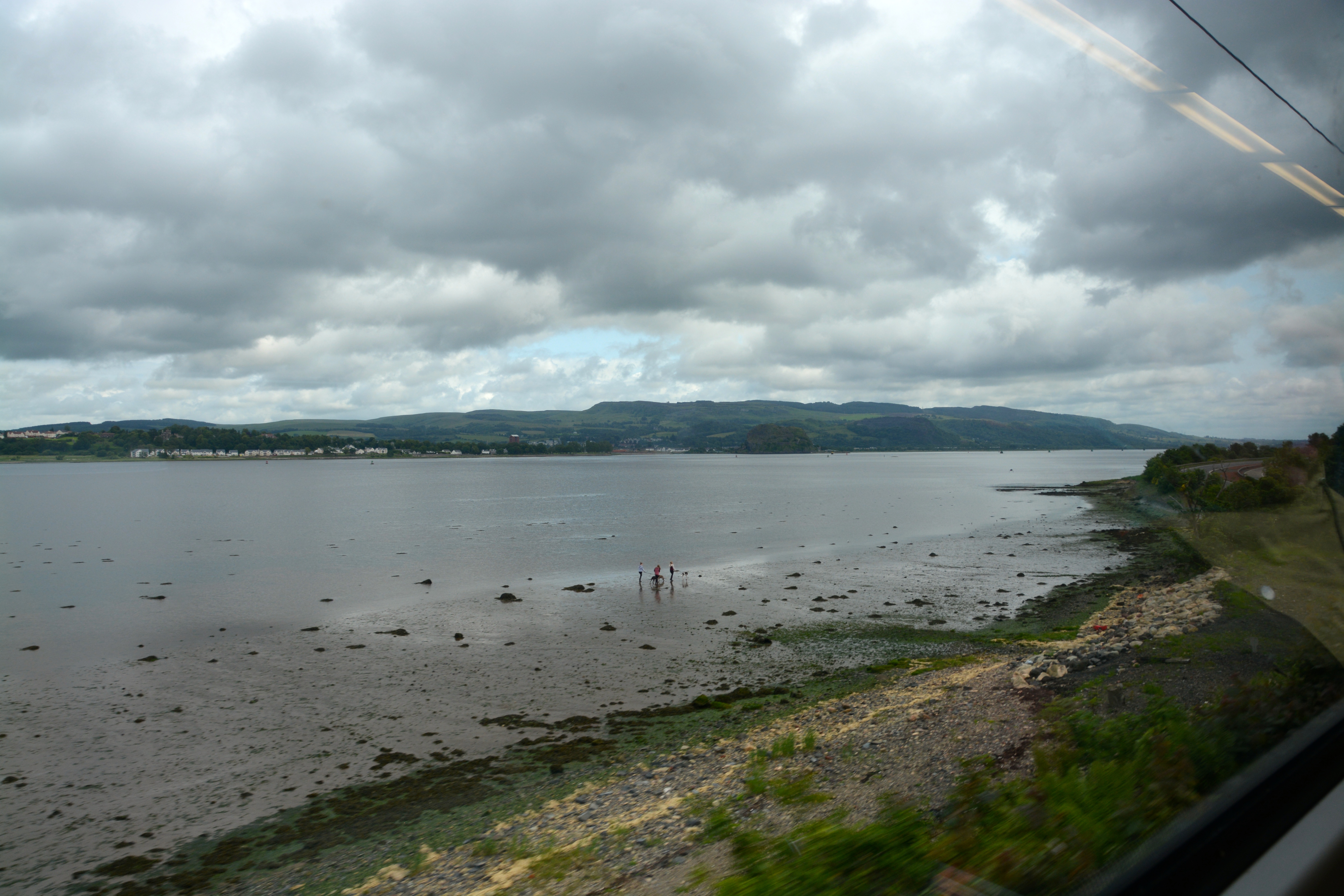 Train travel along the River Clyde from Greenock to Glasgow, Scotland. The canal is no longer deep enough for our cruise ship to go closer in to the city.