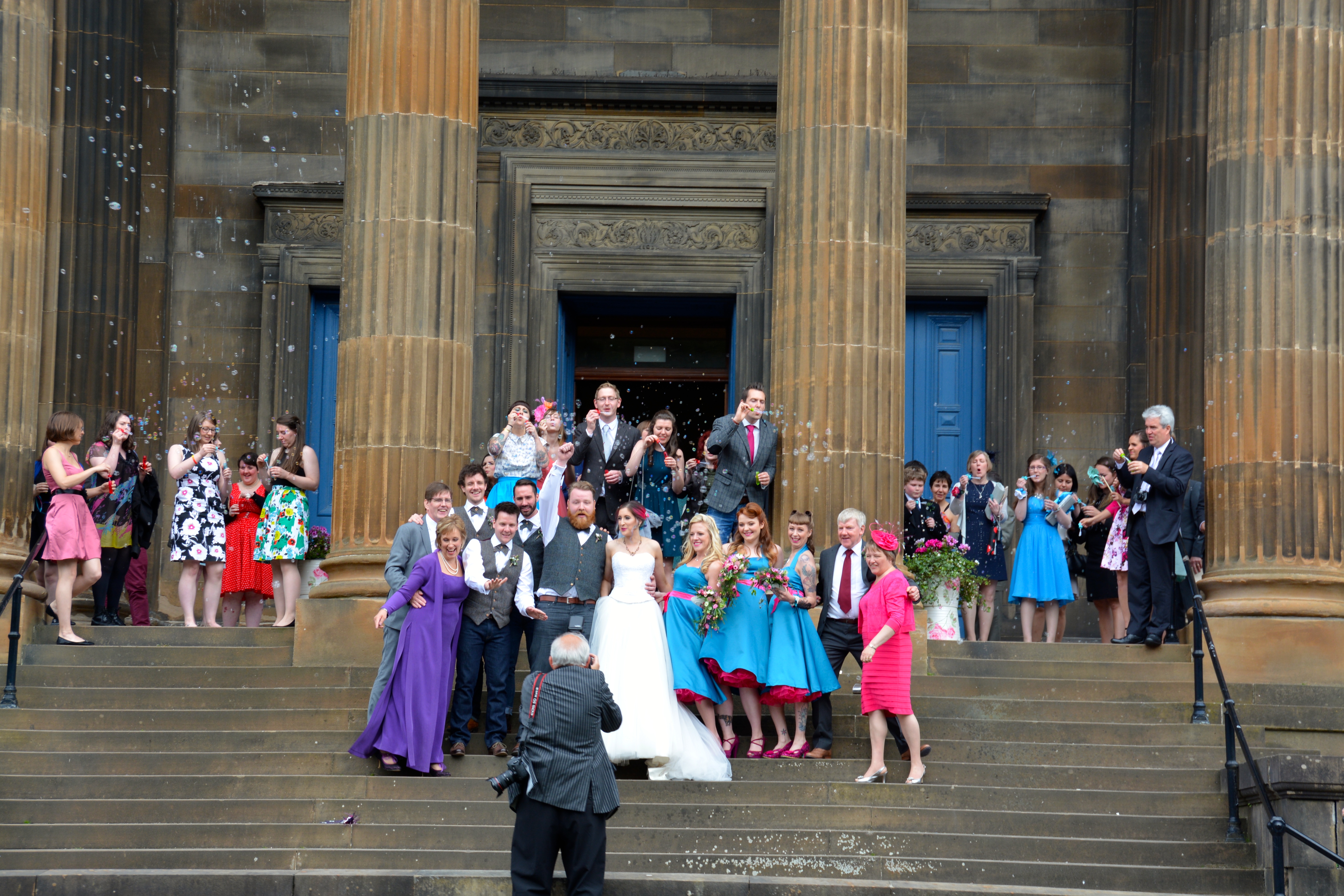 Rocky and I felt like we were invited to the wedding. As seen from our double-decker Hop-on/Hop-off Bus in Glasgow, Scotland.