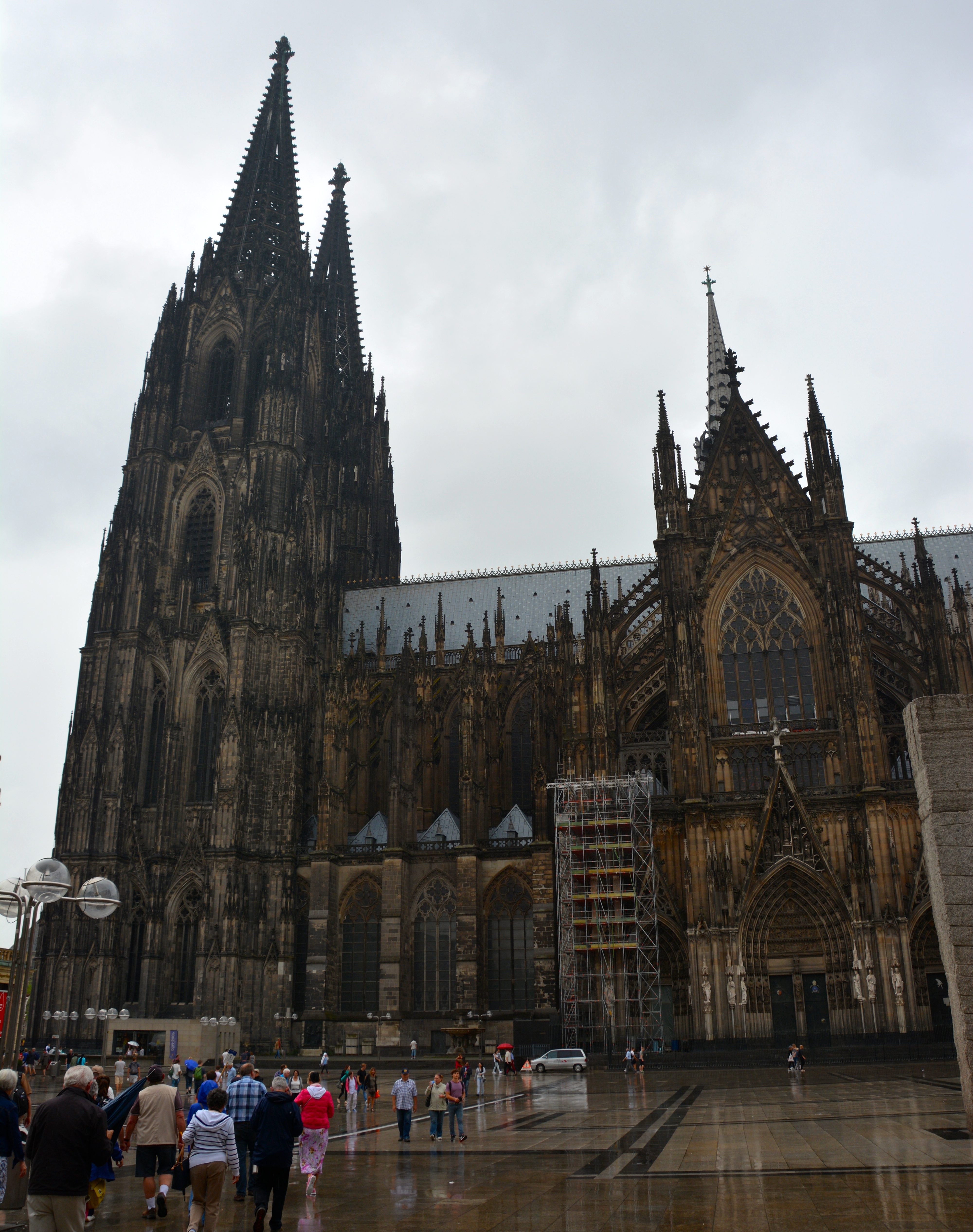 After the brief (or abbreviated) city tour, we finally made it to the Cathedral. The Cologne Cathedral was hit by 14 arial bombs during WWII, but survived. Much of the stained glass had been removed and the reconstruction shows various styles of glass as it was replaced over time. The Cathedral remains in a constant state of repair because of weather, pollution, and reconstruction. The Cathedral is a World Heritage site and Germany’s most-visited monument with a average of 20,000 visitors a day.