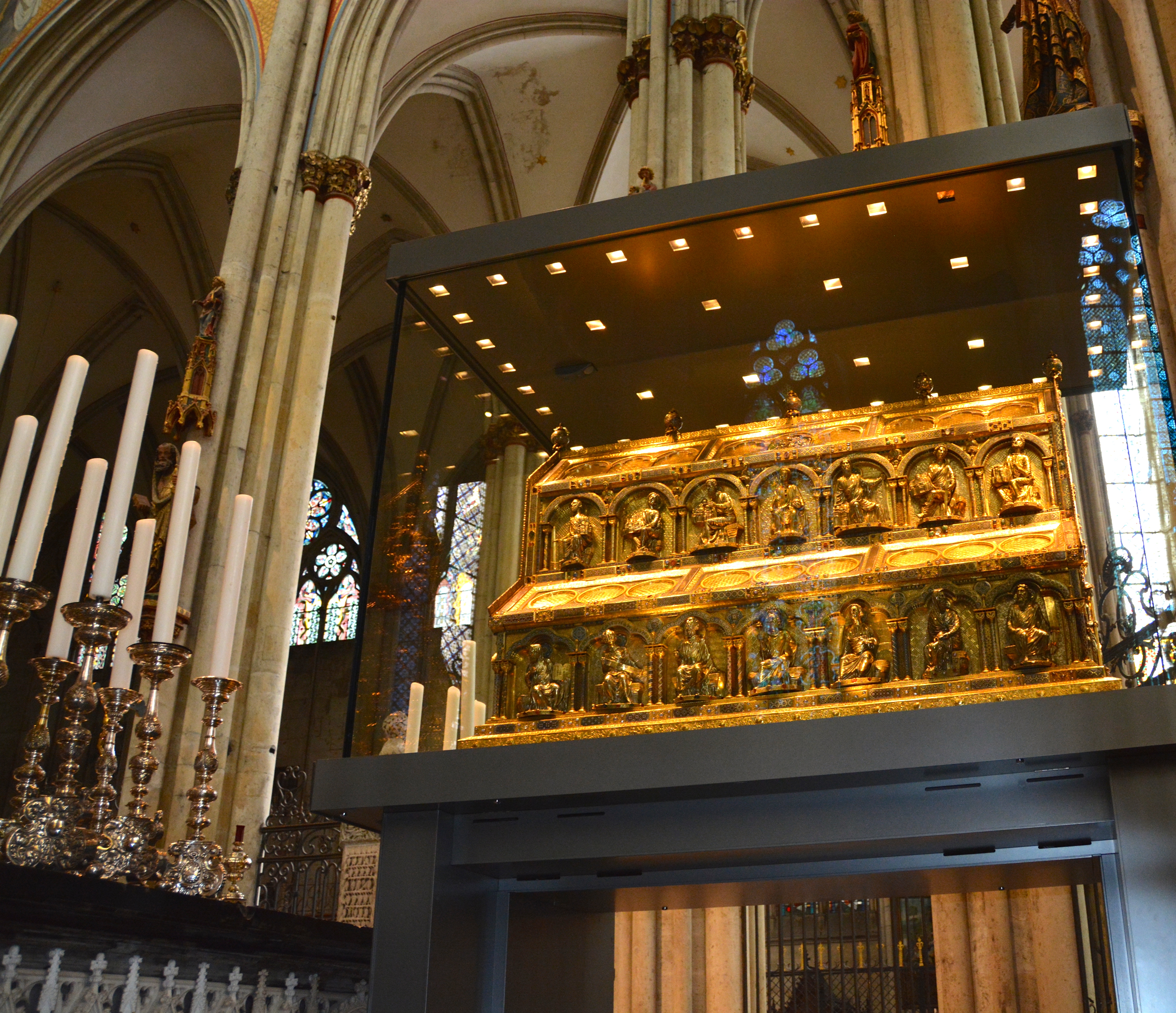 The Cologne Cathedral is the largest Gothic Church in Northern Europe. With its twins spires, it has the largest facade of any church in the world. Construction began in 1248 and halted in 1473, not beginning again until the 19th century. Construction was completed in 1880. Noteworthy is the fact that the construction never deviated from the original plans. The Cathedral holds the reliquary of the three kings or magi, perhaps the primary reason it attracted so many pilgrims and continues to attract visitors today.