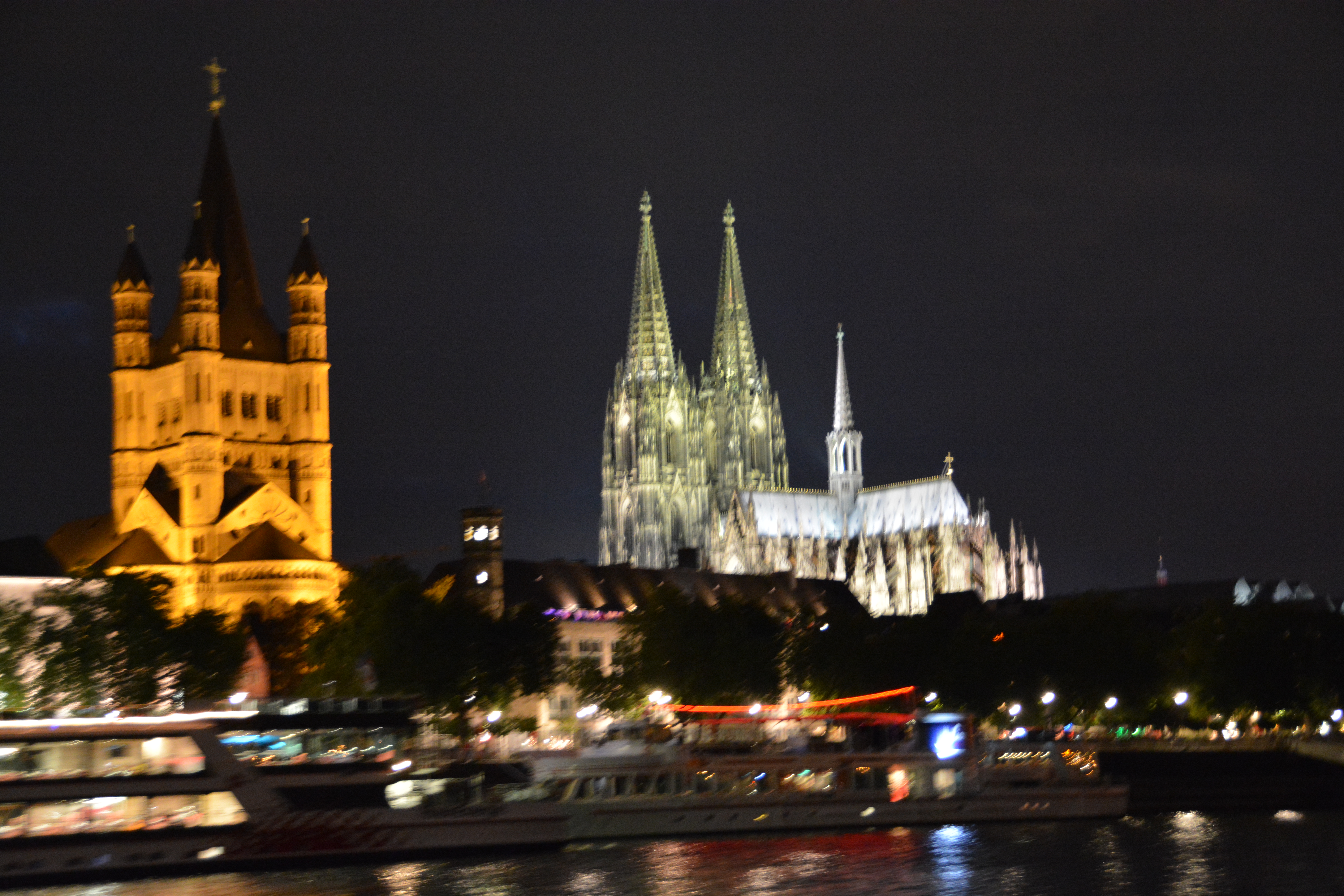 Tonight I enjoyed that window, opening it and the curtains as we sailed down the river Rhine, leaving Cologne. There was a lovely view of the Cathedral, all lit up at night. Further down the river, I saw some really architecturally interesting buildings that seemed to defy gravity. I later identified them as the Kranhaus (“Crane House” in reference to the harbor cranes used to load or off load ship cargo) buildings. Two appeared to be commercial buildings and one looked like a residential building. (I confirmed I was correct later.) Each are 17 stories and shaped like an upside down “L”.