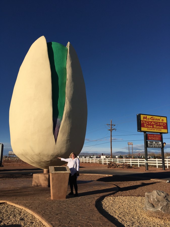Natasha at the World’s Largest Pistachio at McGinn’s Tree Farm outside Alamogordo, New Mexico