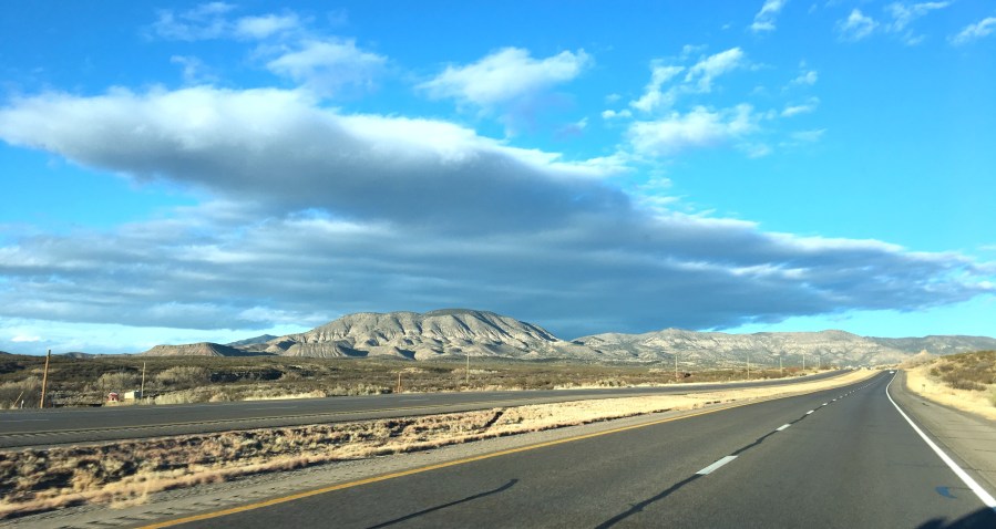 Our destination, Sierra Blanca, with storm (snow) gathering above it. ©Jean Janssen