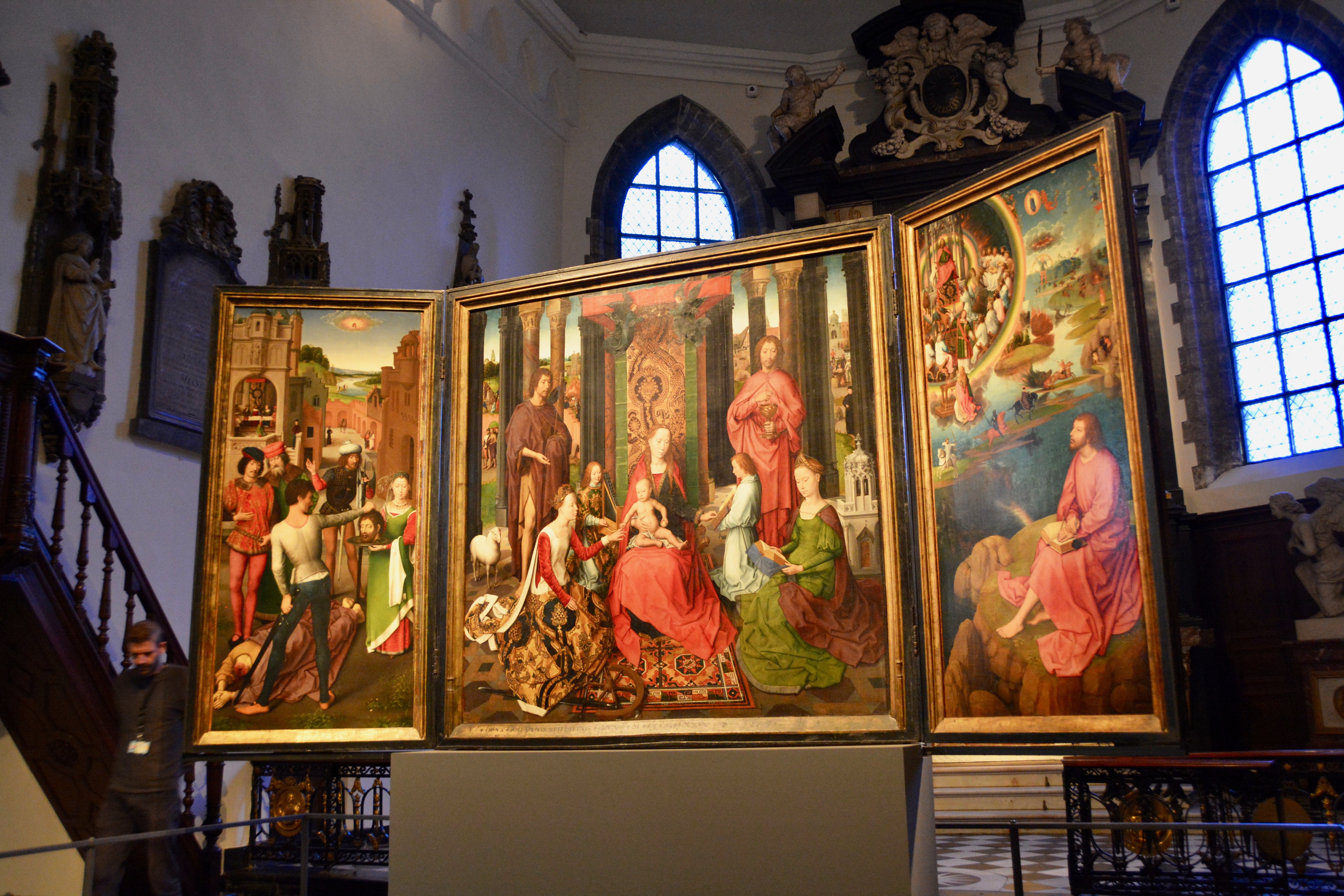 Photo ©Jean Janssen. This large altar piece, the Mythical Marriage of St. Catherine, is on display in the chapel of St. John’s Hospital, Bruges.