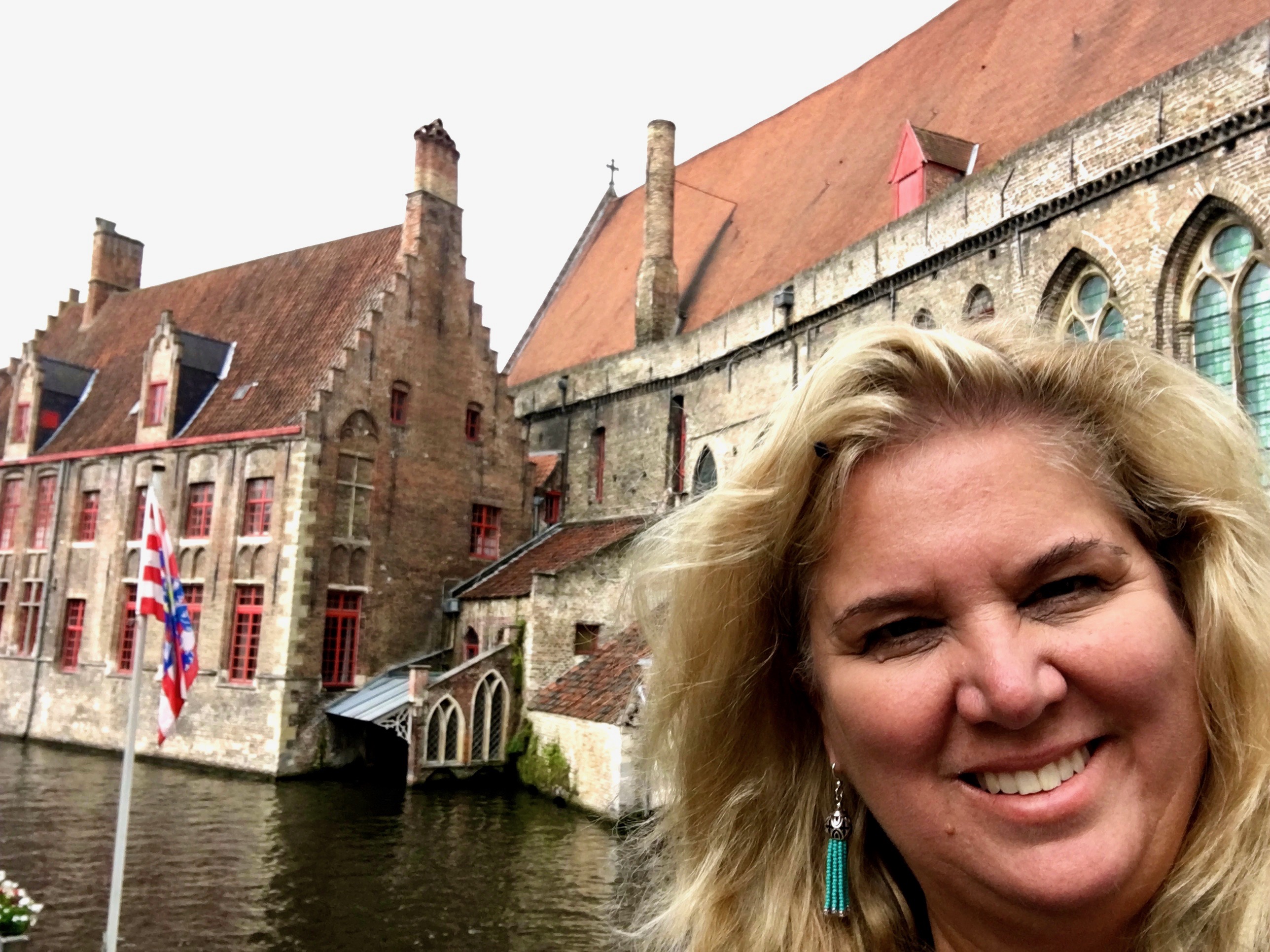 Photo ©Jean Janssen. A Natasha selfie on the Maria Bridge with St. John’s Hospital in the background.