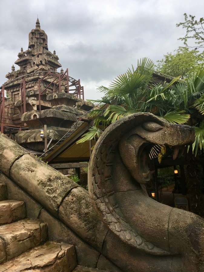 Photo ©Jean Janssen. The theme elements on Indiana Jones’ Temple of Peril at Disneyland Paris are very well done.