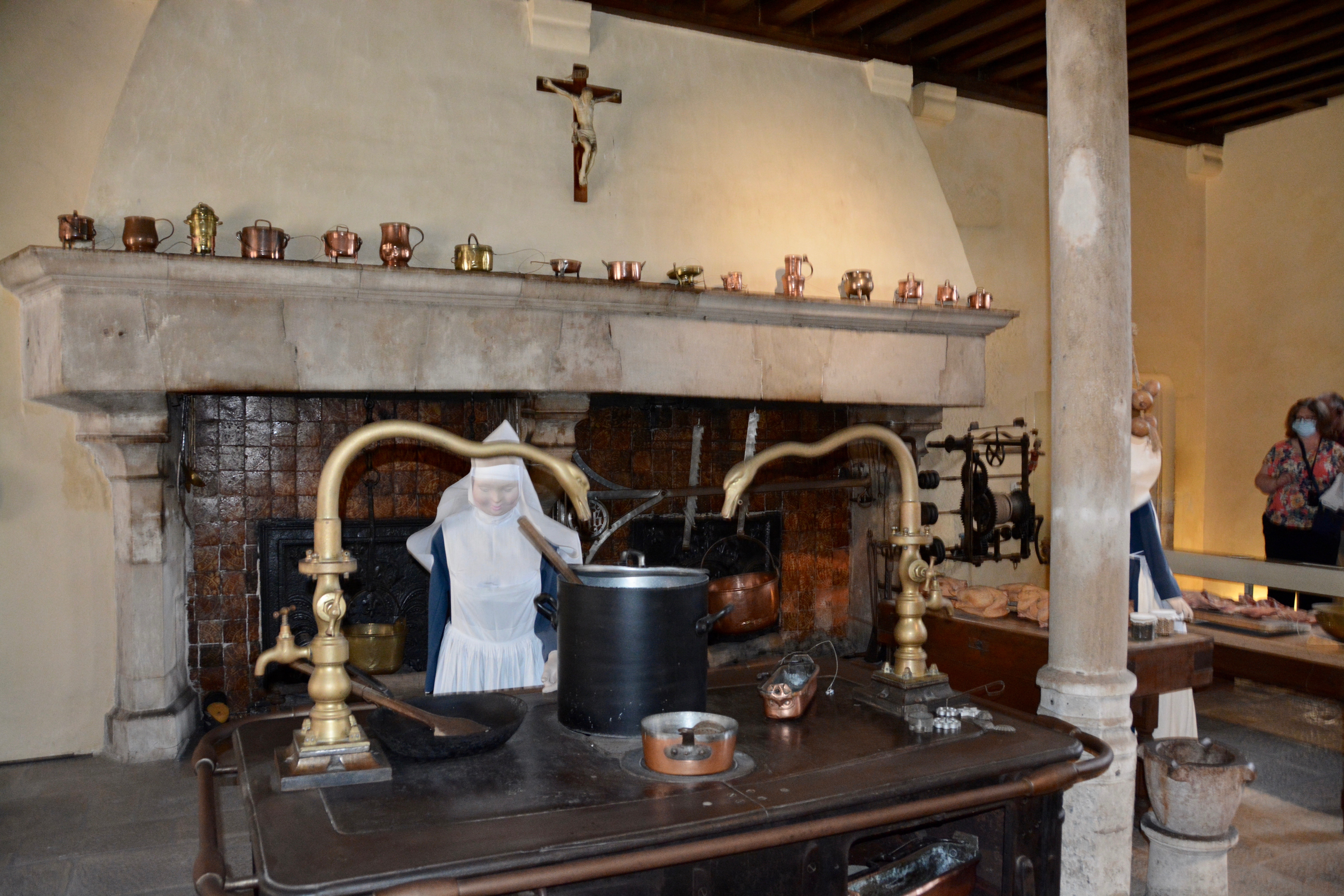 We also made a stop in the hospital kitchen out of which not only the patients were served, but the community. Free bread was handed out to all the citizens. In the Middle Ages, the bread was used first as a plate or bowl and then as sustenance. We made a stop in the laboratory where equipment used to produce the medicine was on display. The medicine was probably initially brought in, but over time the sisters who staffed the facility learned how to make the medicines and took over this responsibility. The laboratory was connected to the pharmacy where the jar of Dragon’s Blood was the highlight. As the guide suggested, it might have been right out of Harry Potter. For the record, there is apparently a Dragon bush or tree in France that the substance comes from.