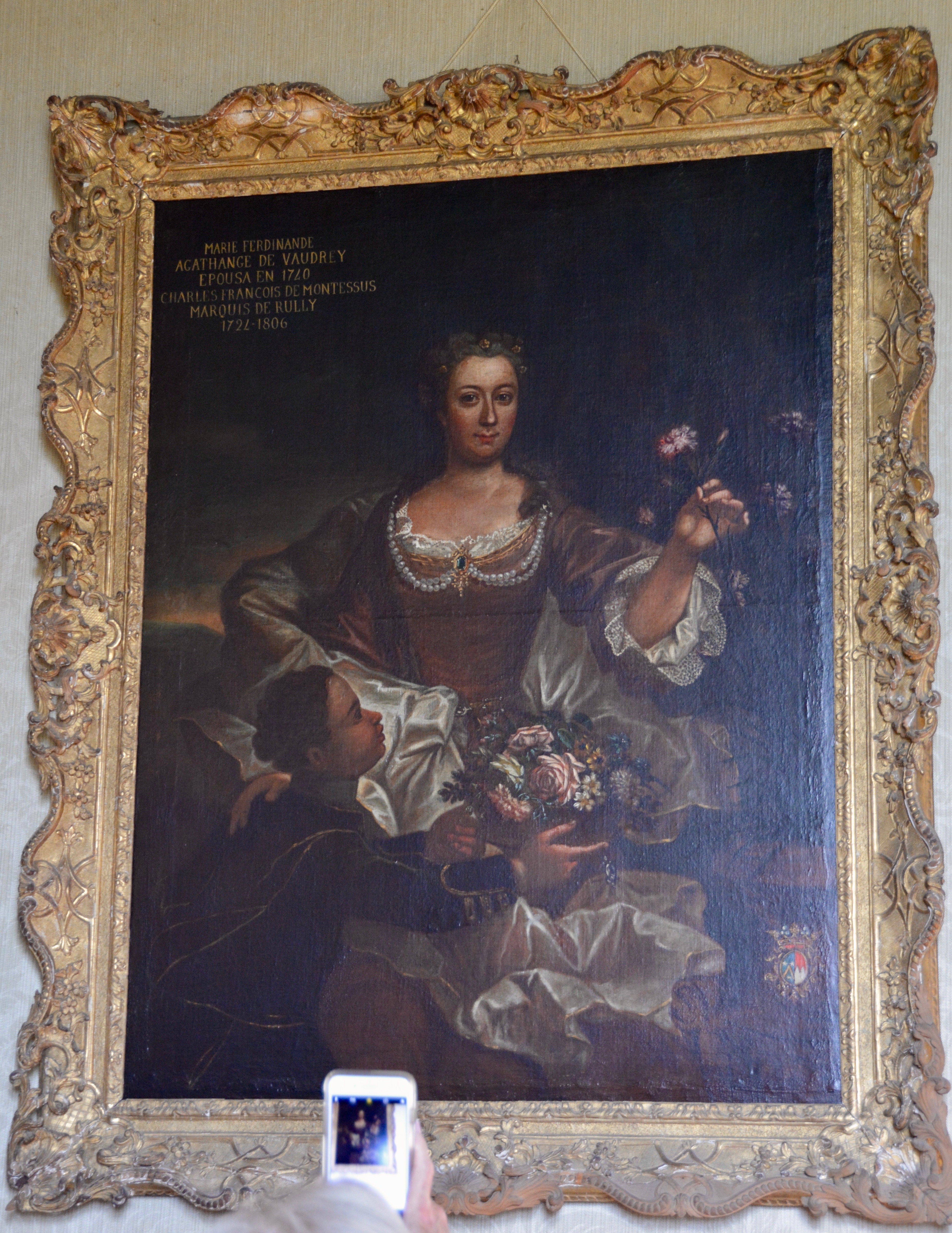 In each room, there are many family portraits and paintings by family members. The Count can trace his lineage back for 46 generations. The family’s last name has changed over the years. If there was no male heir, the female heiress married and took on her husband’s name. The current family name is De Ternary as it has been for the last three generations. In one room the Count pointed out the portrait of the chateau’s lady, Marie Fernand de Vaudrey. The Count de Rully described her as “the most important woman in the family’s history other than his wife”. She was the mother of 14 children. Already a widow at the time of the French Revolution, she was beloved by the community. As nobility, she was imprisoned only briefly during the revolution. It was the local community that petitioned for her release. Because the family was able to survive through this period, the title is preserved to this day.