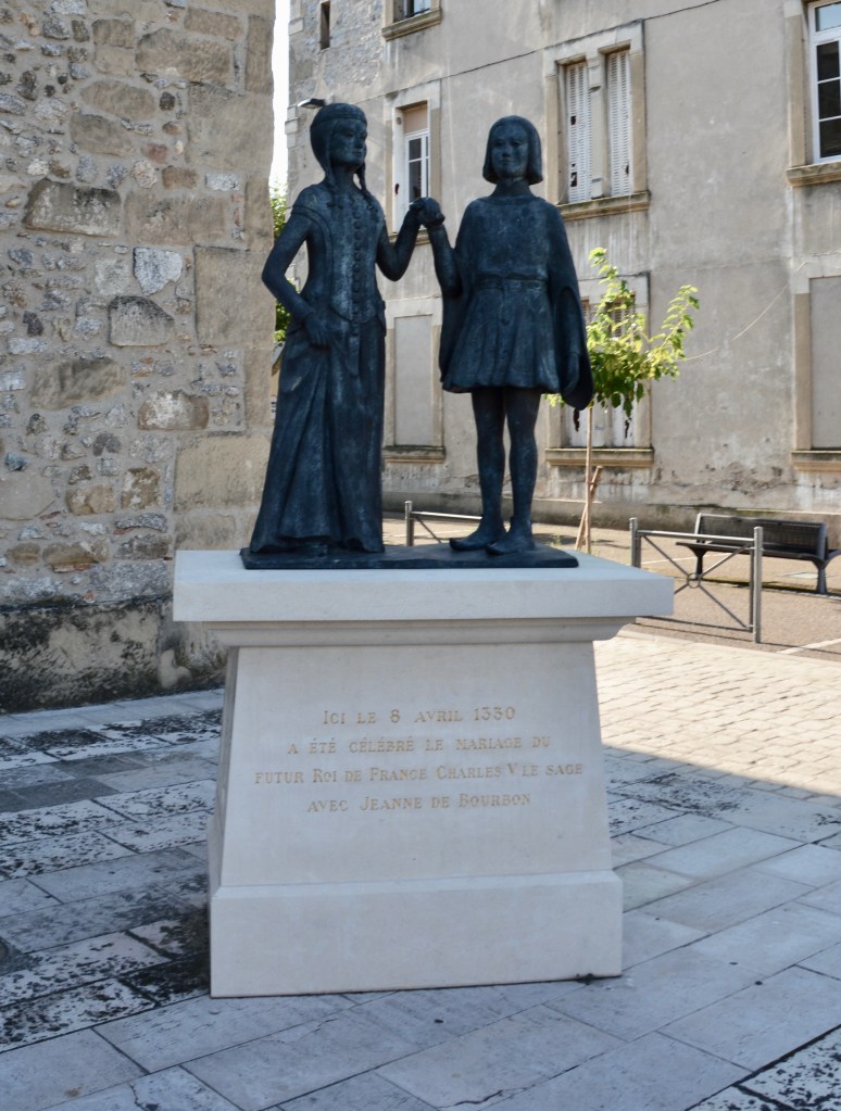 After sailing all night on the Rhone, we are docked at Tain L’ Hermitage, France for a visit to the twin cities of Tain L’ Hermitage and Tournon. After breakfast, we walked over to the historic Romanesque church built on the site where King Charles V of France and his cousin Joanna of Bourdon were married on April 8, 1350. A statue outside commemorates the event. I remarked to Boris that I thought the statue was of two children and he told me that Charles V was 12 at the time of the marriage. I guess I was right.