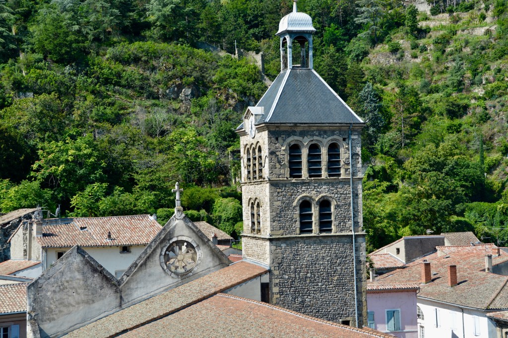 The “Gothic…church of St Julien [was] [p]robably built on the site of a Roman temple and certainly in the place of a Romanesque church…[the church] is dedicated to St Julien, a Roman centurion beheaded in Brioude (Auvergne) during the reign of Emperor Diocletian (245-313). Erected as a collegiate church between 1316 and 1348, the church of St Julien constitutes a rather surprising architectural ensemble: the offset bell tower, the chapels replaced by houses, the Italian-style ceiling give it an atypical character.” Religiana.