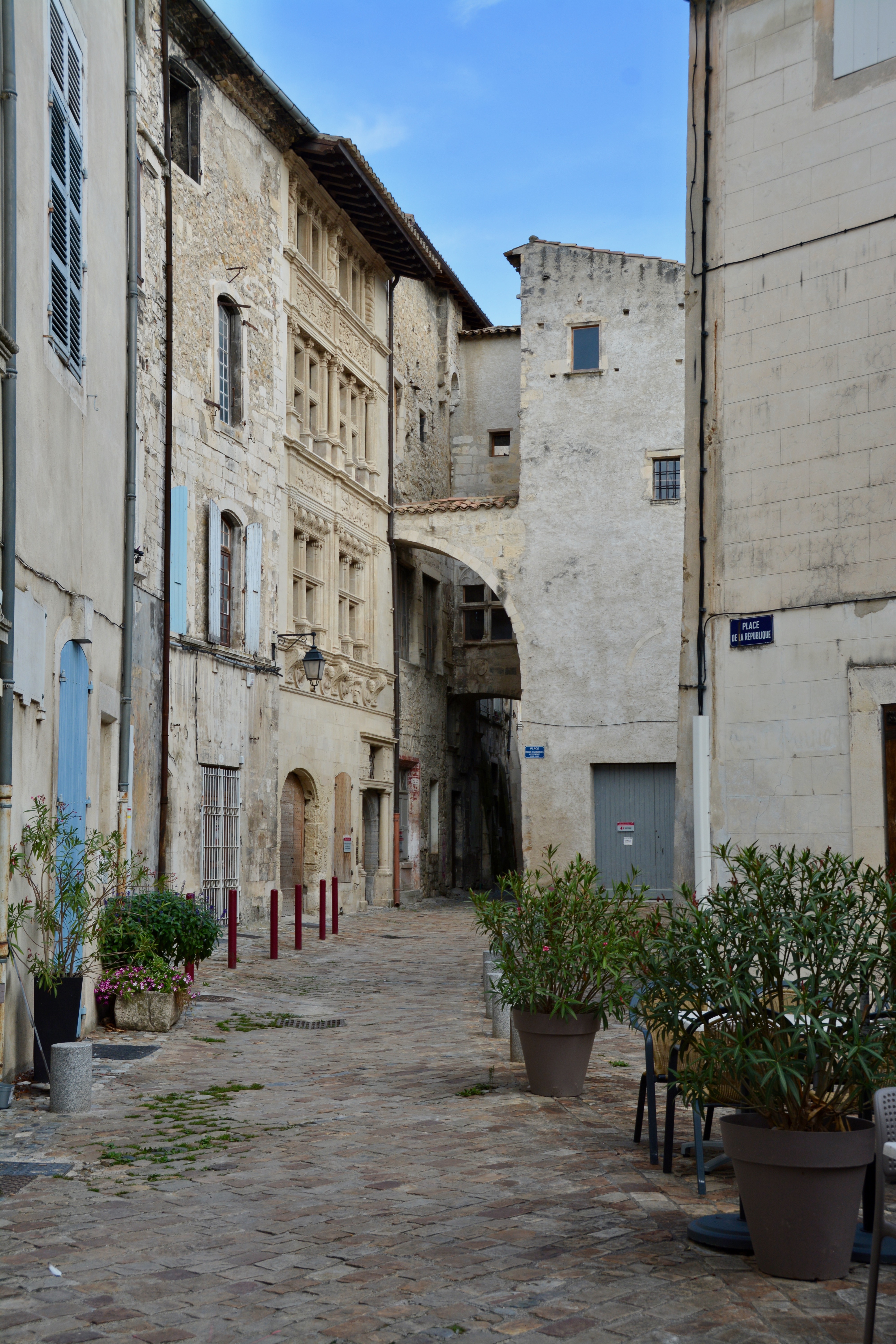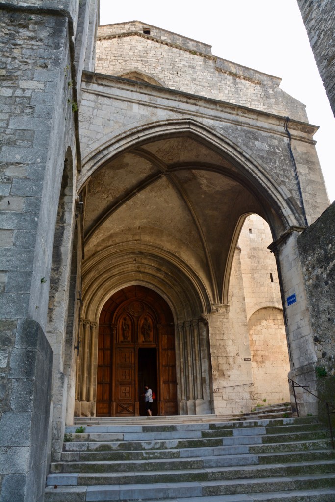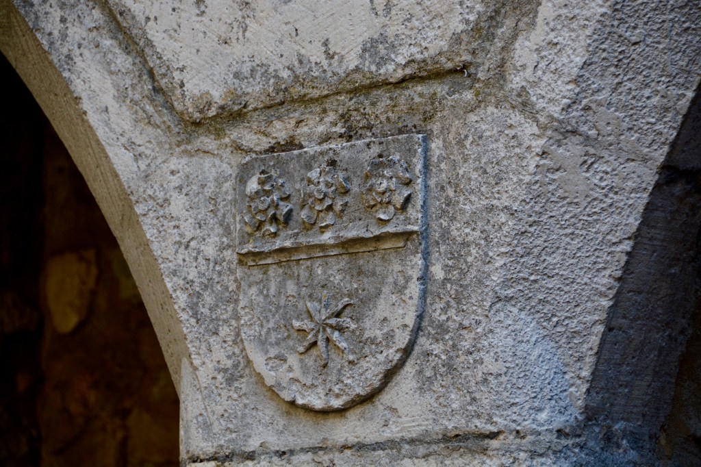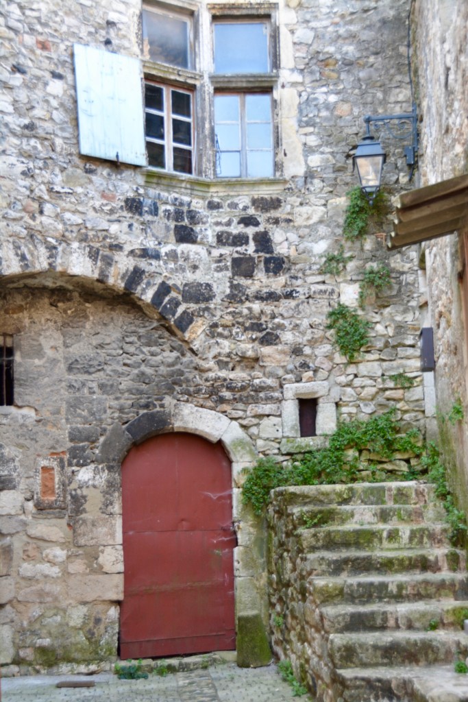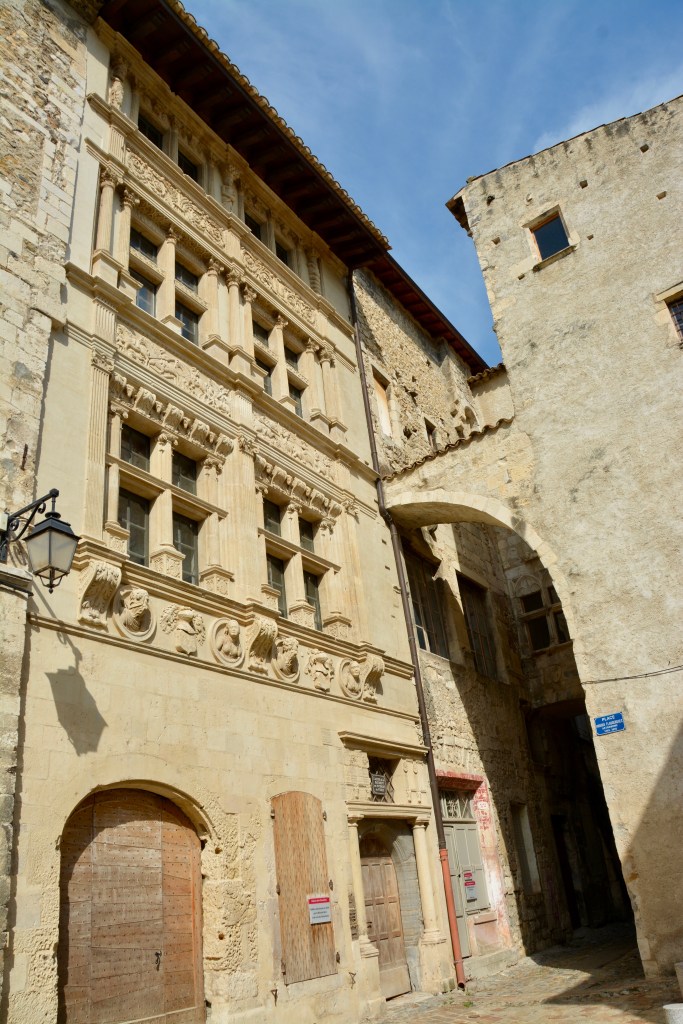 In the lower city, Jeanette also pointed out the Maison des Chevaliers. The property was first owned by salt merchant and art lover, Noel Albert. He used his wealth to renovate the property in the 16th century with ancient Roman decorations. “The different floors are decorated by mullioned windows framed by pilasters, Ionic, Doric columns and composites and busts in medaillion.” Du Rhone aux Gorges de Ardeche.