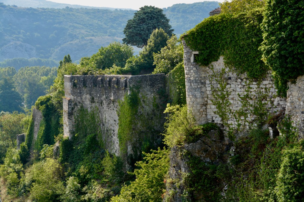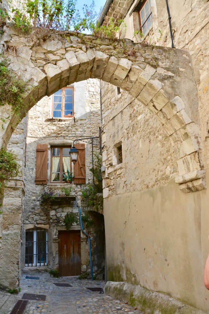 If a town could ooze charm, this is it. Today we are in Viviers, France right on the Rhone. This well-preserved medieval town thrived in both the Middle Ages and the Renaissance. Some writers call it an “architectural open-air museum”. It boasts France’s smallest active Cathedral, two surrounding city walls, and vaulted passageways, including one that separates the lower from the upper town.