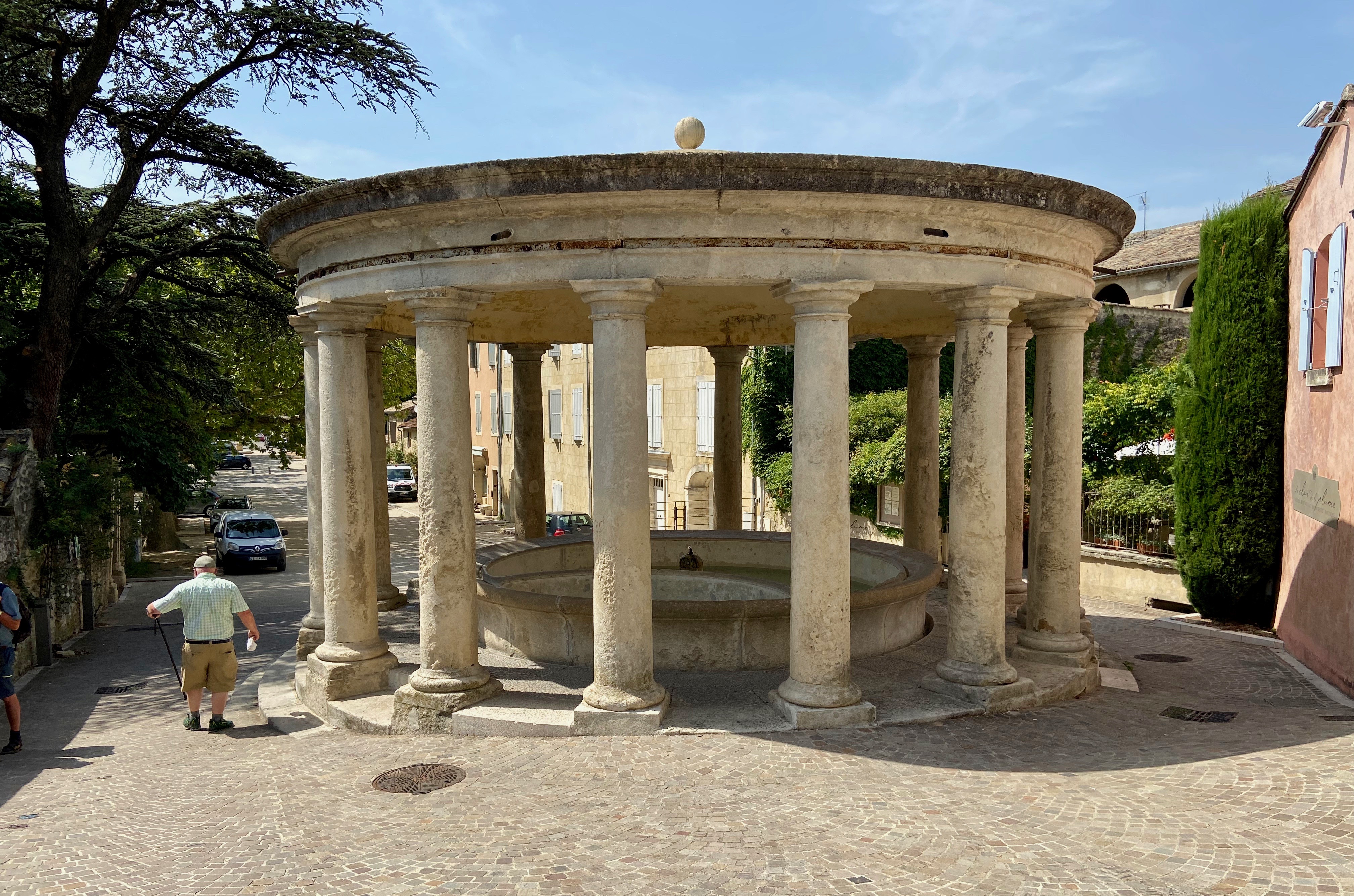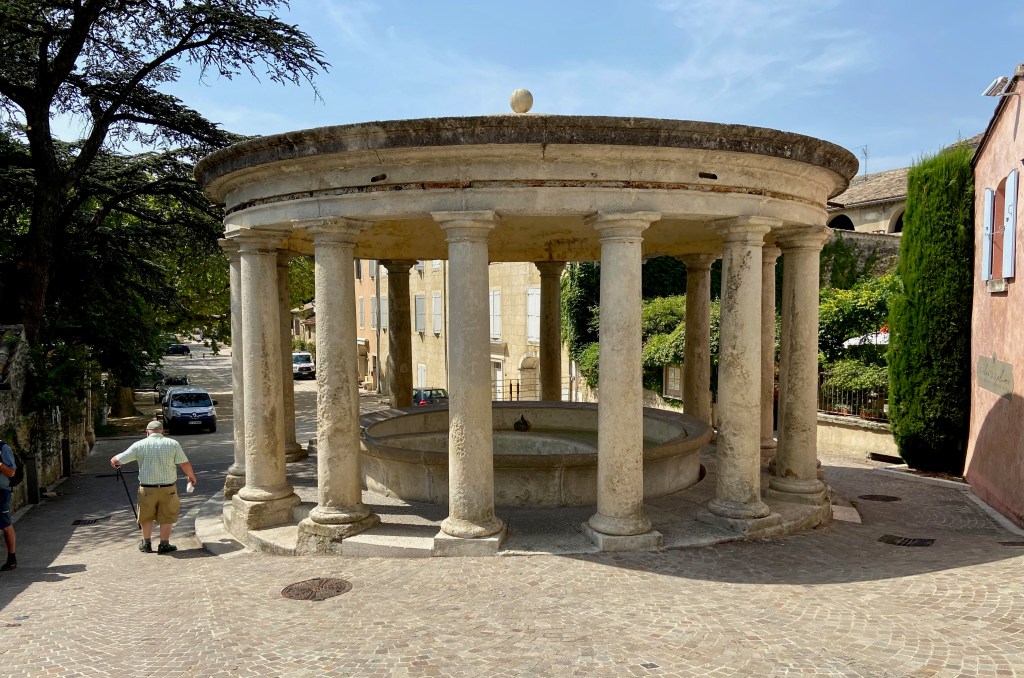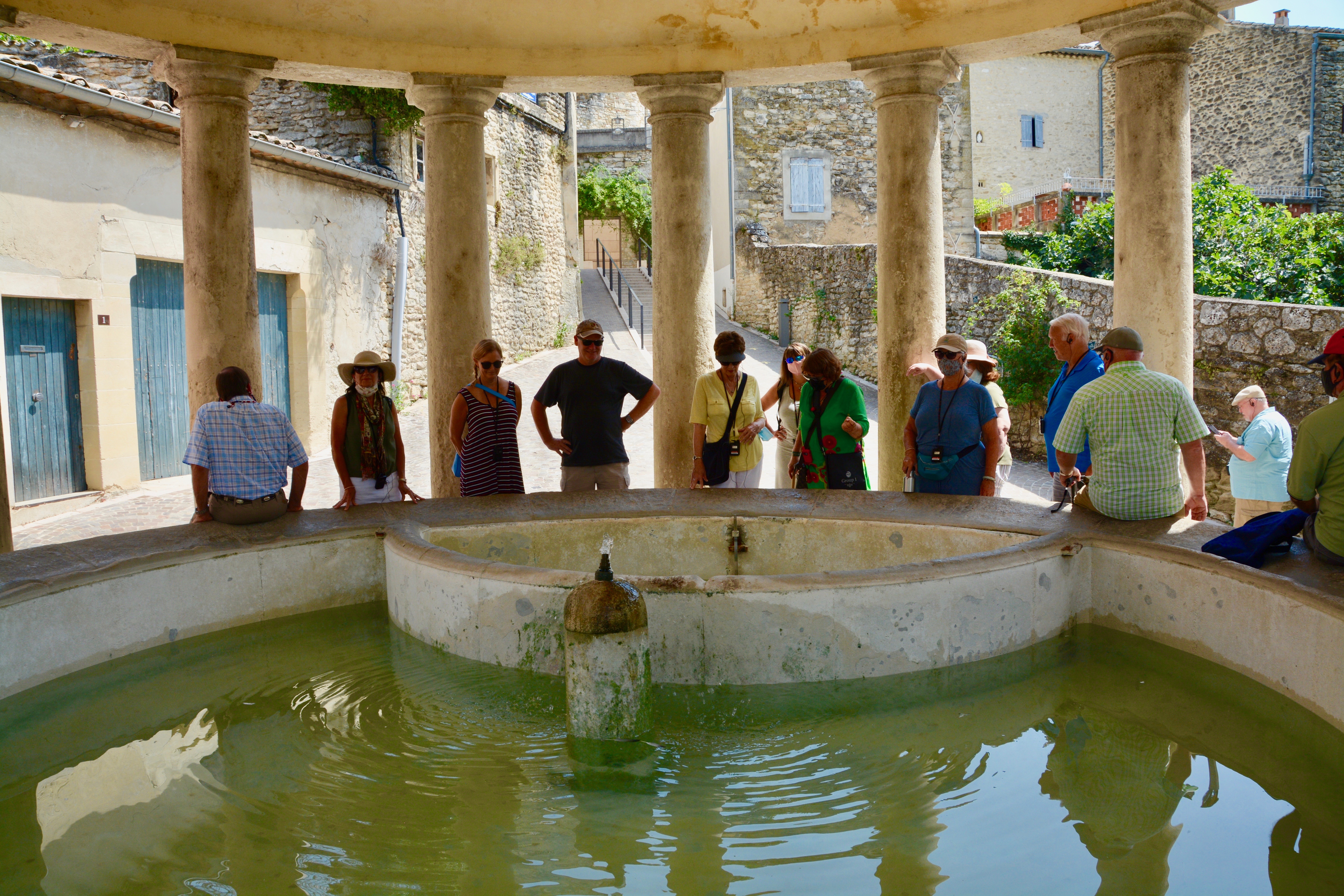 This afternoon we are taking a special excursion to another French city, Grignan. The castle sits perched on a rocky promontory that has been occupied since the iron age. In the 5th and 6th centuries, Romans occupied this land. We had a wonderful view of the city as we approached. Departing the bus, we found a wonderful domed washing station. This communal washhouse was a city hub. Today, we saw several dogs enjoy the cool water, including a West Highland White Terrier (like our Peabody) named Igloo.