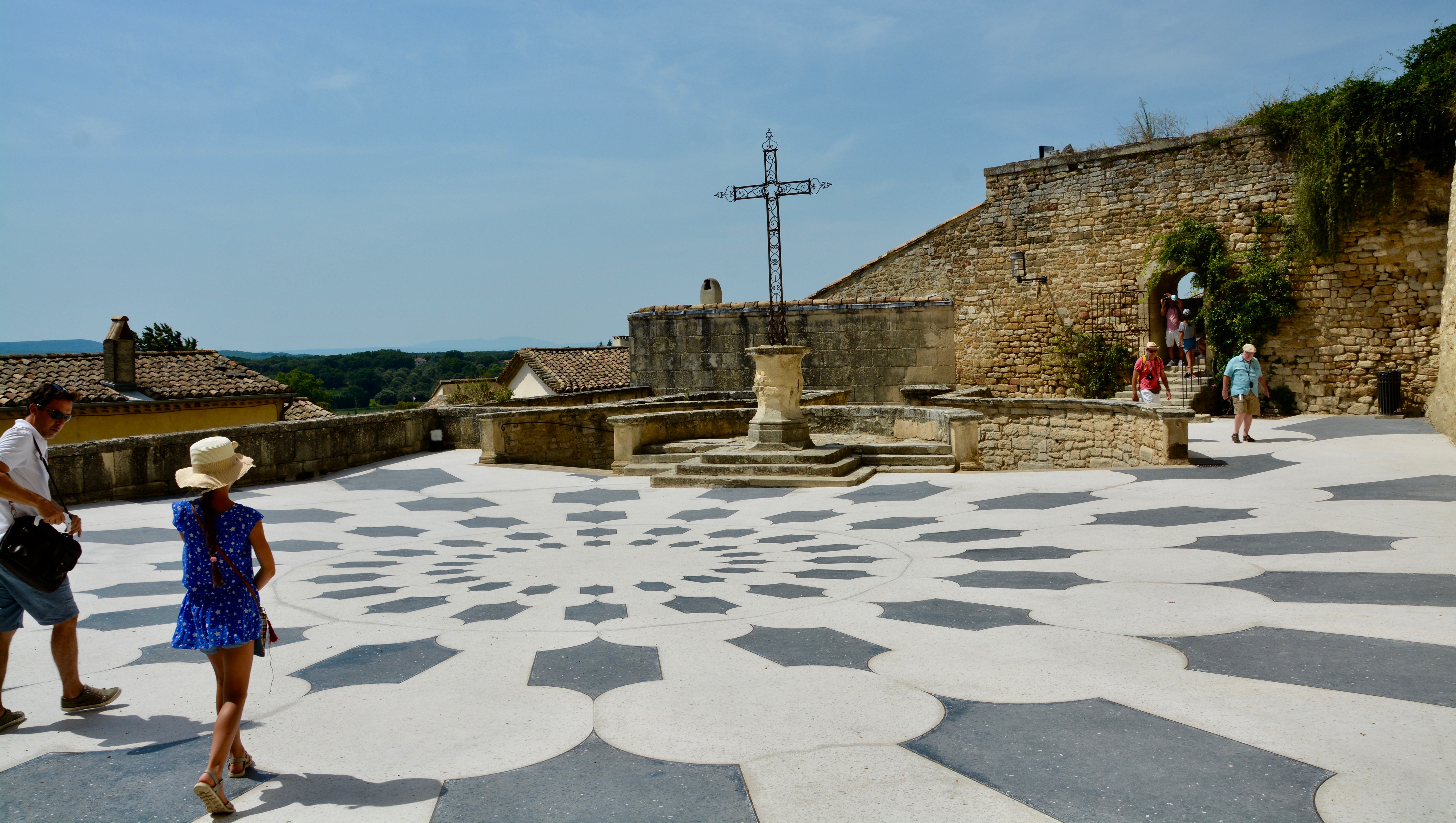We made our way to the upper city and France’s smallest active Cathedral, Saint Vincent’s. From the Belvedere of Chateauvieux we had wonderful (almost) 360 degree views of the area, including the beautiful tiled rooftops. Jeanette pointed out one eyesore that just had a red roof. She said the owner, like everyone else who lived in the medieval city, would be required to cover the red surface and replace the tiles to match the other buildings.