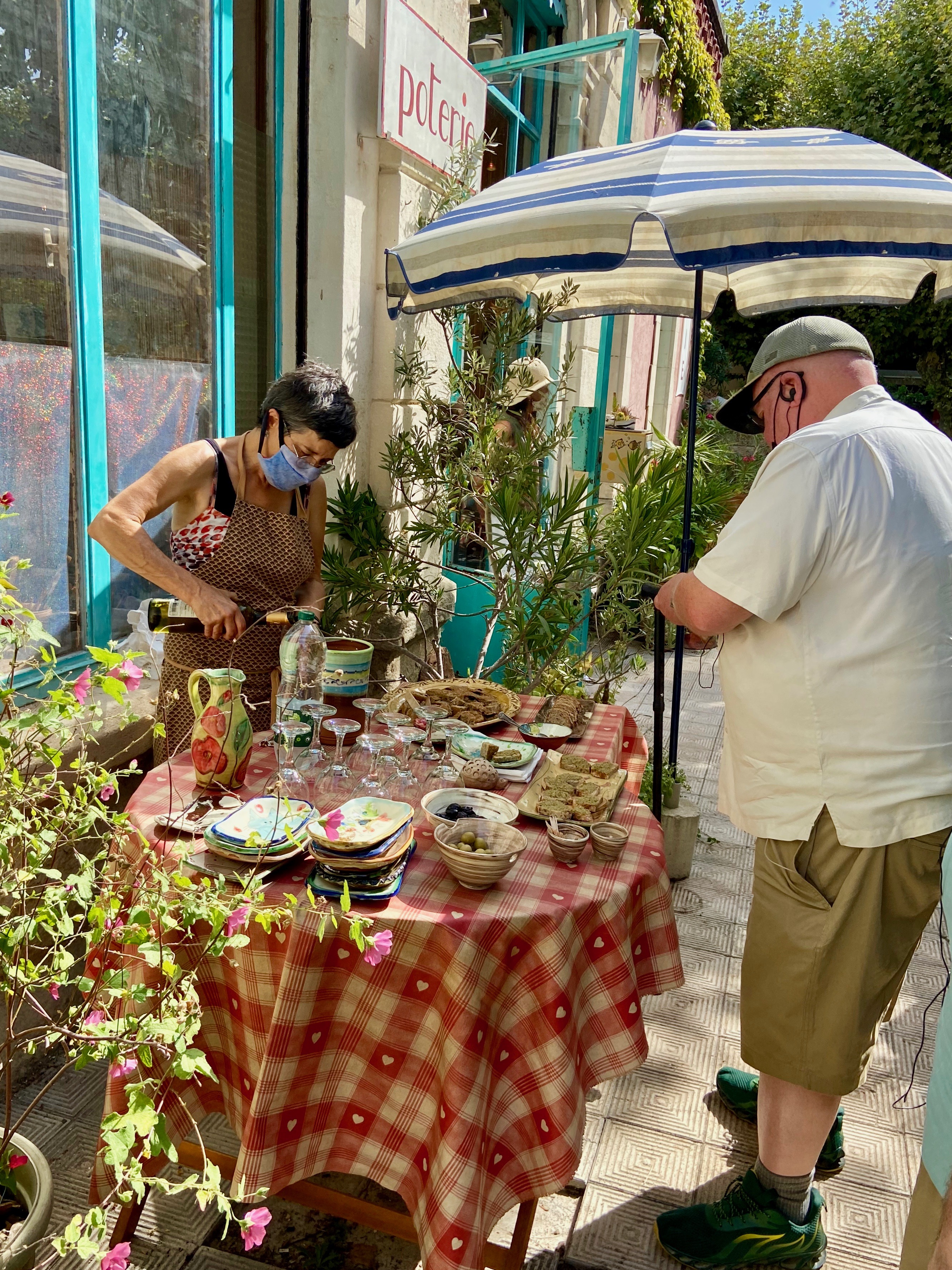 Afterwards, we enjoyed wine and appetizers on the patio of the potter’s shop. Natasha loves her pottery, so of course I did a little shopping keeping in mind that I had to be able to get the pretties home.