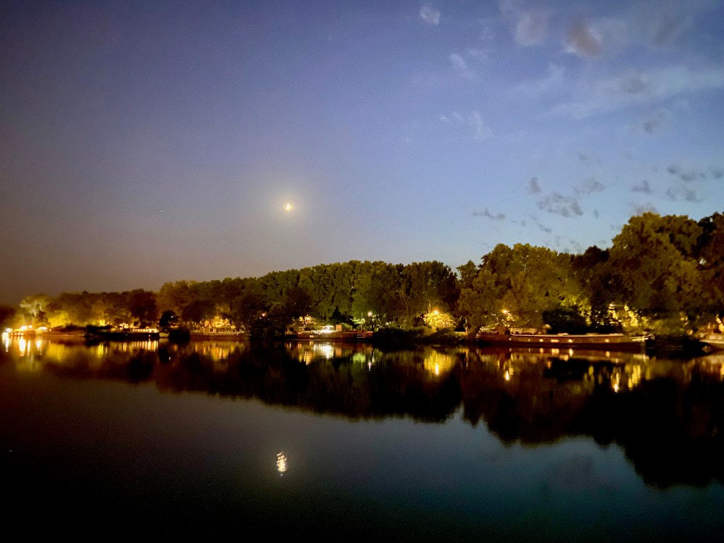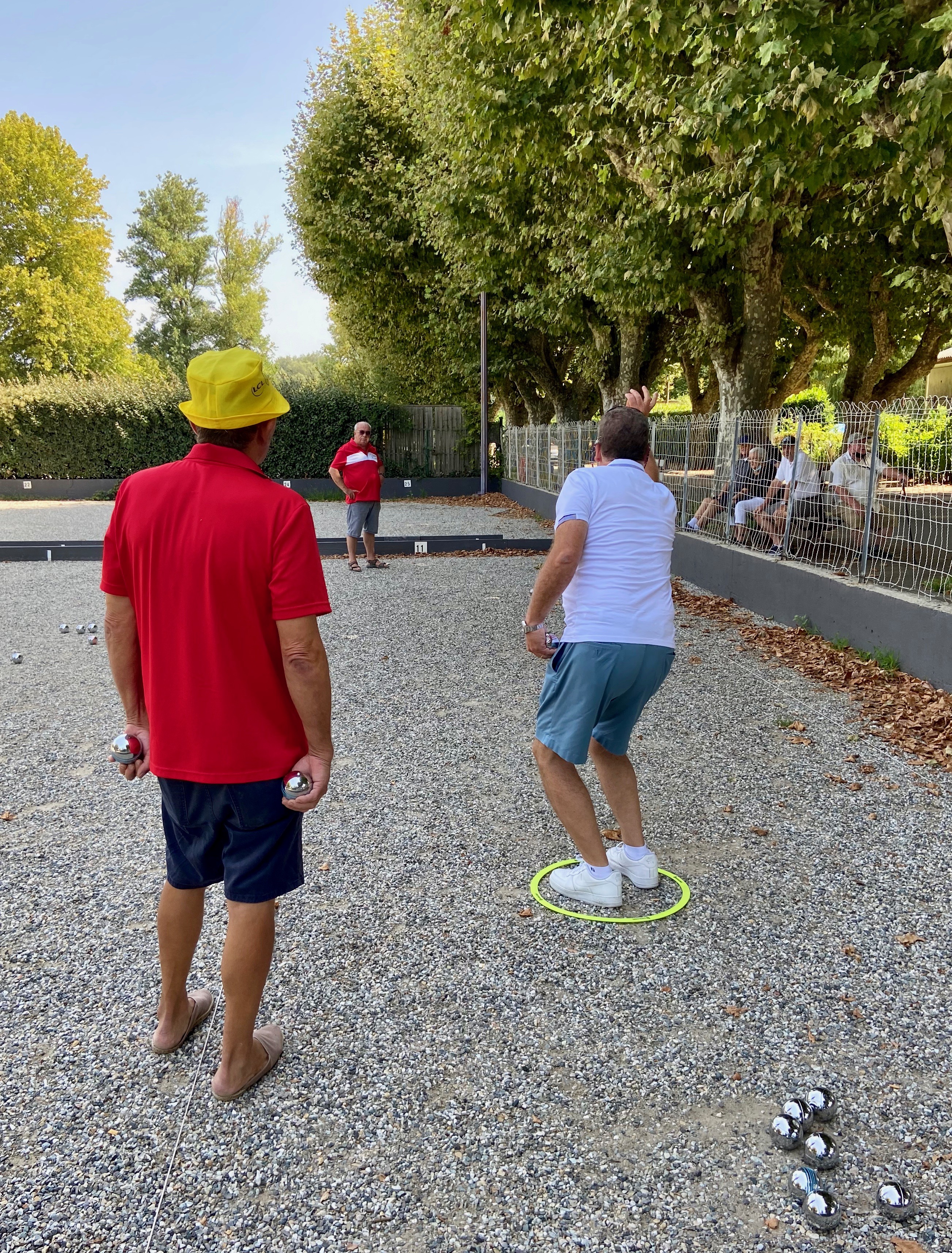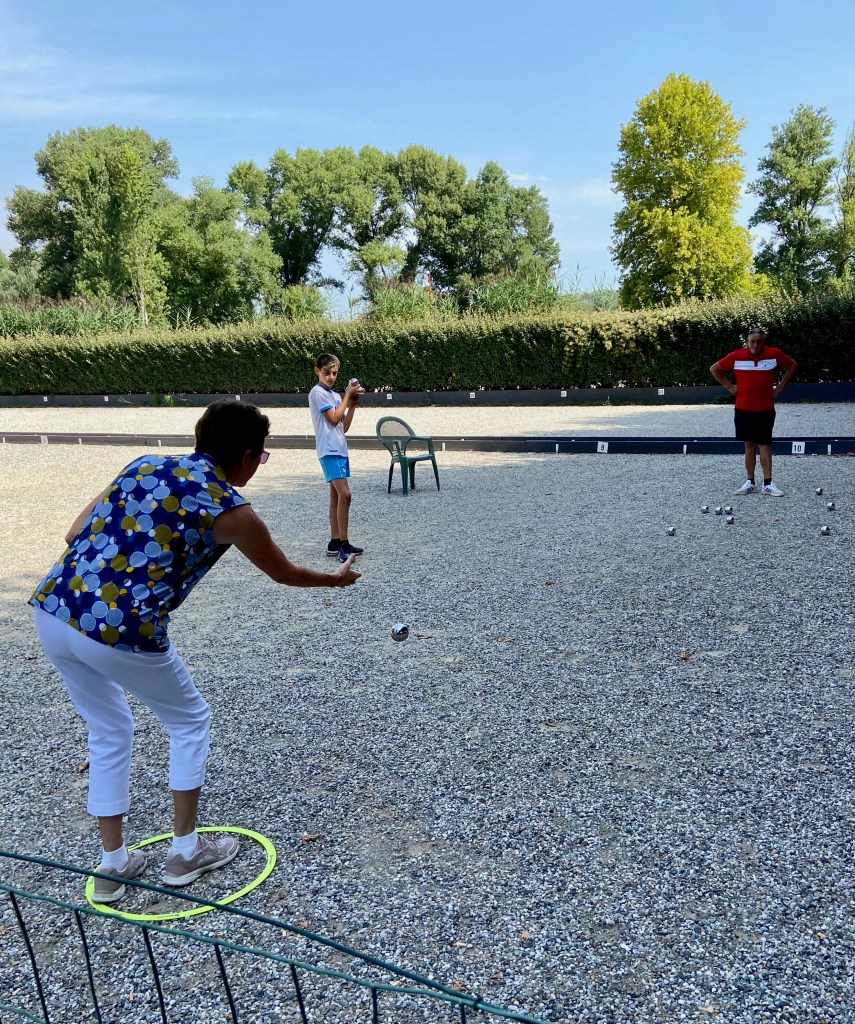 After the pottery shop, we headed back down the linden-tree lined lane toward the ship. We had passed the boulodrome where petanque is played on our way into town. It is so popular that the town has a dedicated space with at least a dozen terrains where the game could be played. One of the benefits of petanque is that it doesn’t require a dedicated space like basketball would. We watched for a while, but it was hot and we were tired, so Boris and I headed back to our nearby ship to cool off and for lunch.