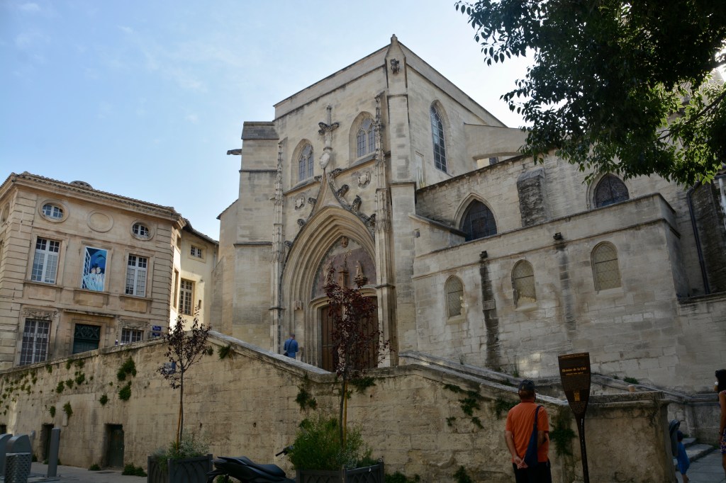 Following our Avignon guide, I crossed the subway (under street), passed the parking lots, and entered through one of the eight city gates. Avignon is a fortified city rich in medieval history; its buildings, 39 towers, 8 gates, walls, and bastions were built between 1350 and 1368 and restored in the 19th century.