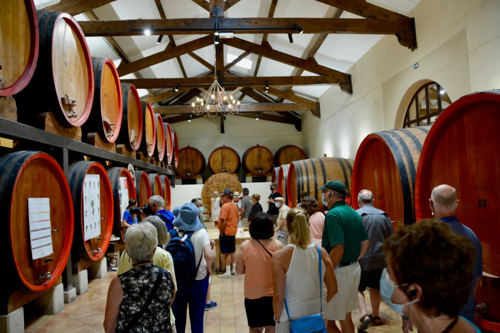 It was the Avignon popes who promoted the wines of this region and John XXII who built the castle that is the symbol of the area. Chateauneuf du Pape literally translates as “the Pope’s new castle”. The wines of this region are very popular in France, mostly bold reds but there are some whites. The whites can be hard to find since only 7% of fields are planted with the white grapes. Several people on the tour really love the wine. These are blended wines, officially using several of 13 grape varieties (although there are 20 varieties in the region). The most used grape variety in Chateauneuf du Pape is Grenache.