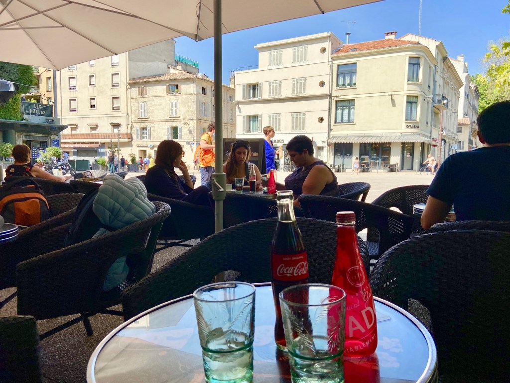 I love sitting at French cafes, especially outside. You get to experience a bit of French culture and you can’t beat the people watching. I enjoyed a sparkling water in one of my favorite pink bottles that I collect and a cold Coke. With the breeze and an umbrella overhead, sitting, watching, and enjoying a cold beverage felt like a little bit of heaven.