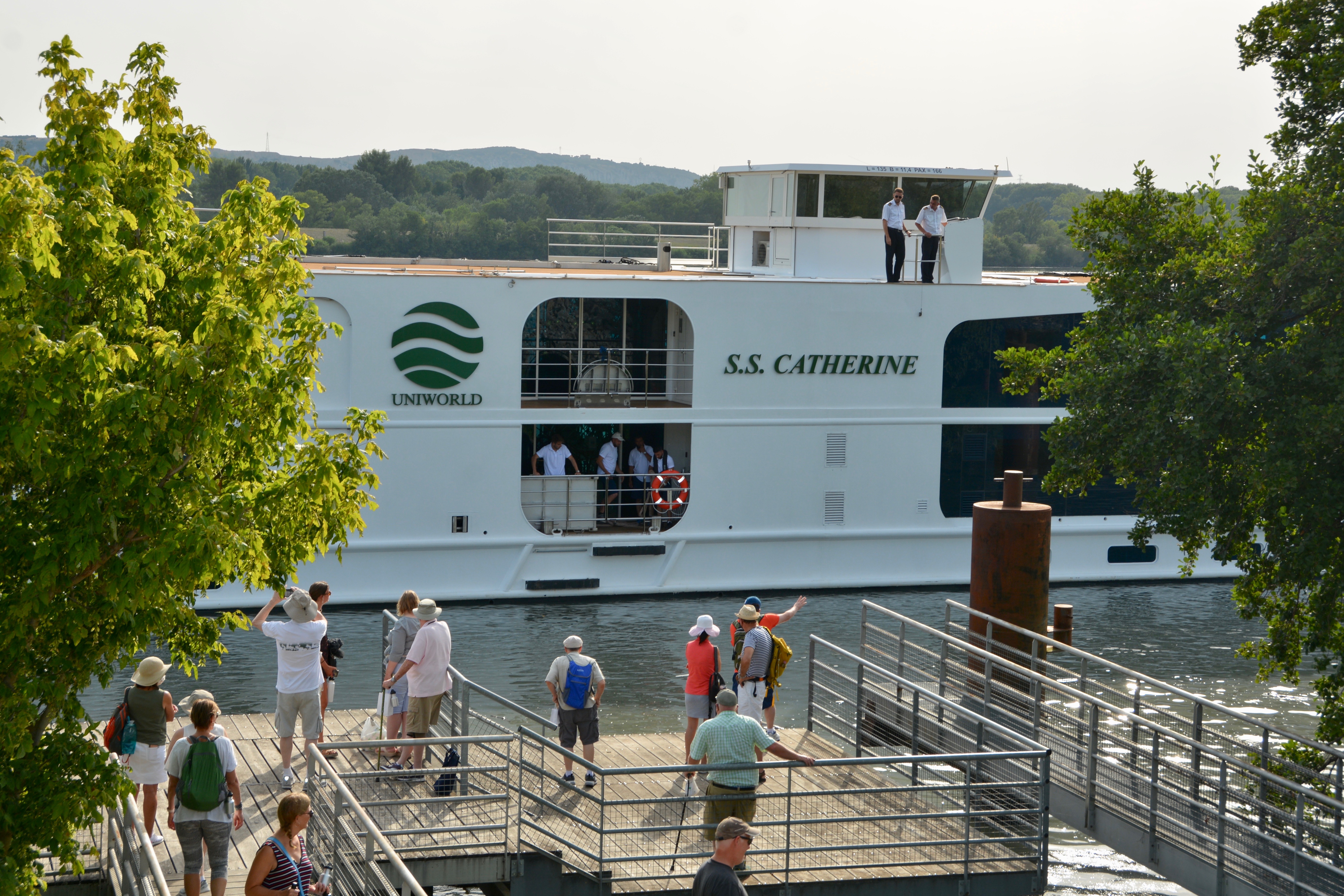 Today we are in the beautiful French city of Avignon in Burgundy. This is one of the few remaining cities that has all its city walls still in place; the walls stretch for over three miles. At our berth along the Rhone, the SS Catherine sits in view of the old city walls. Only a small percentage of the citizens live within the walls. Although it is possible to drive within the walled old city, parking is scarce so most of the residents park outside and large parking lots sit between our ship and the city walls.