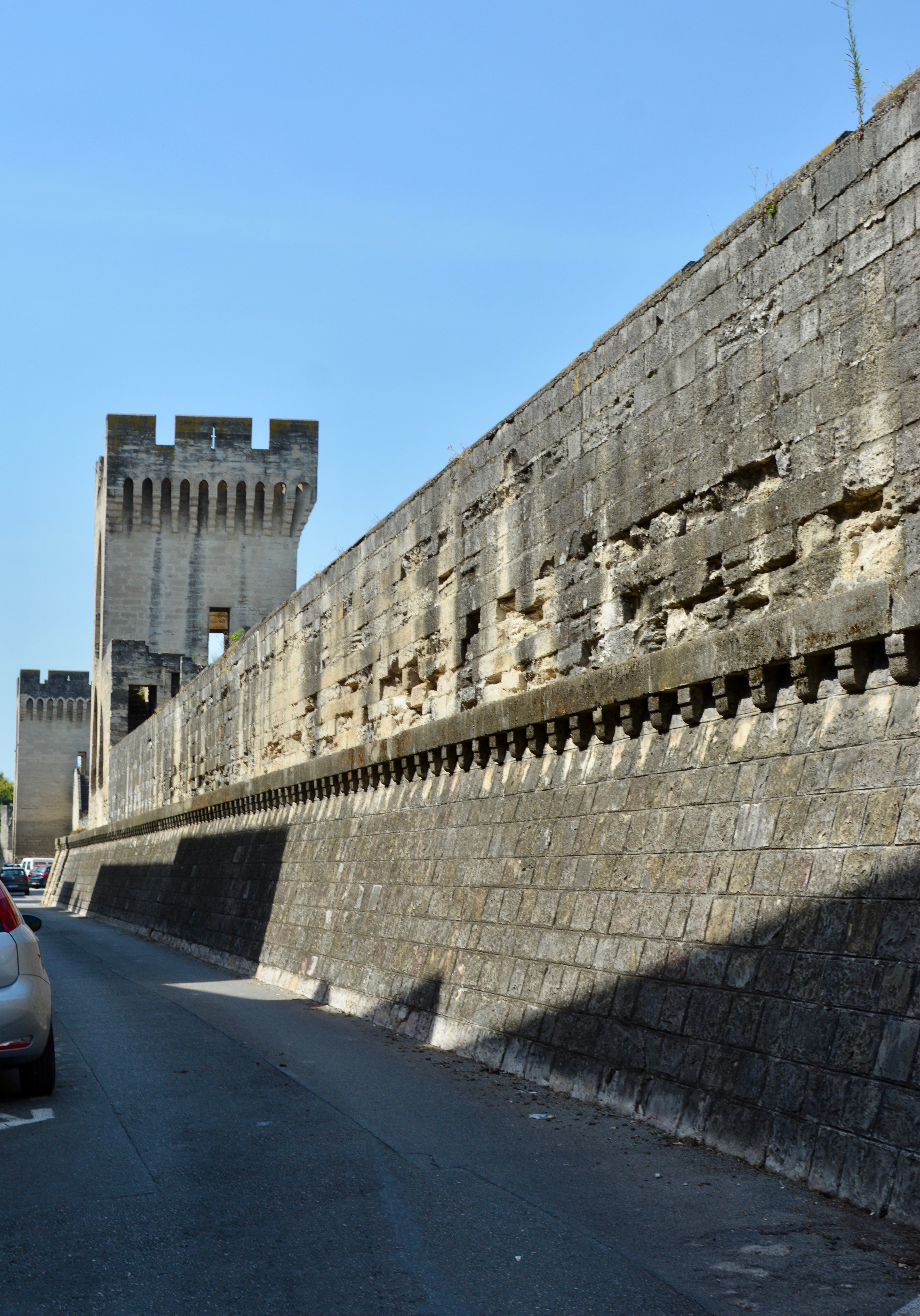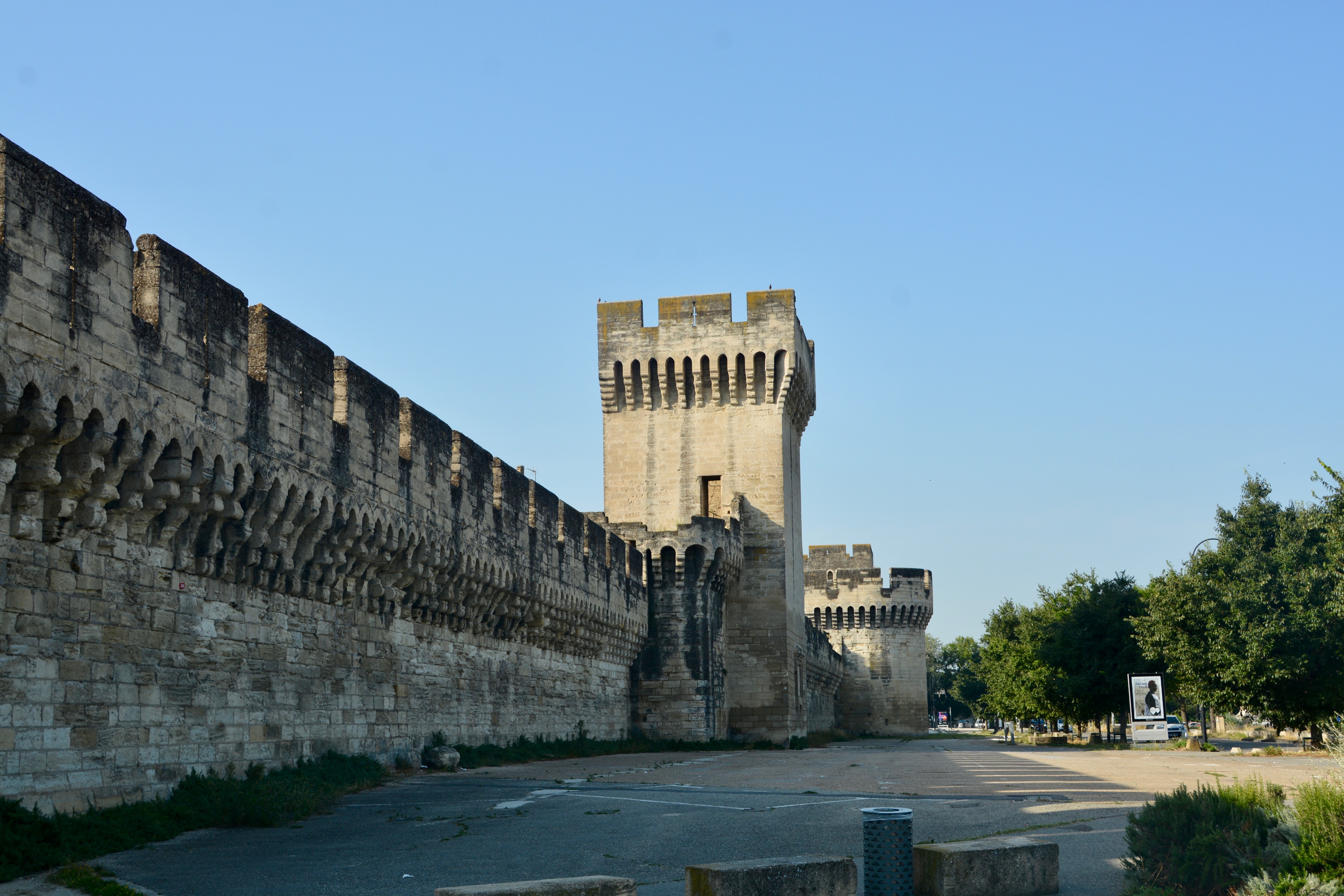 Following our Avignon guide, I crossed the subway (under street), passed the parking lots, and entered through one of the eight city gates. Avignon is a fortified city rich in medieval history; its buildings, 39 towers, 8 gates, walls, and bastions were built between 1350 and 1368 and restored in the 19th century.