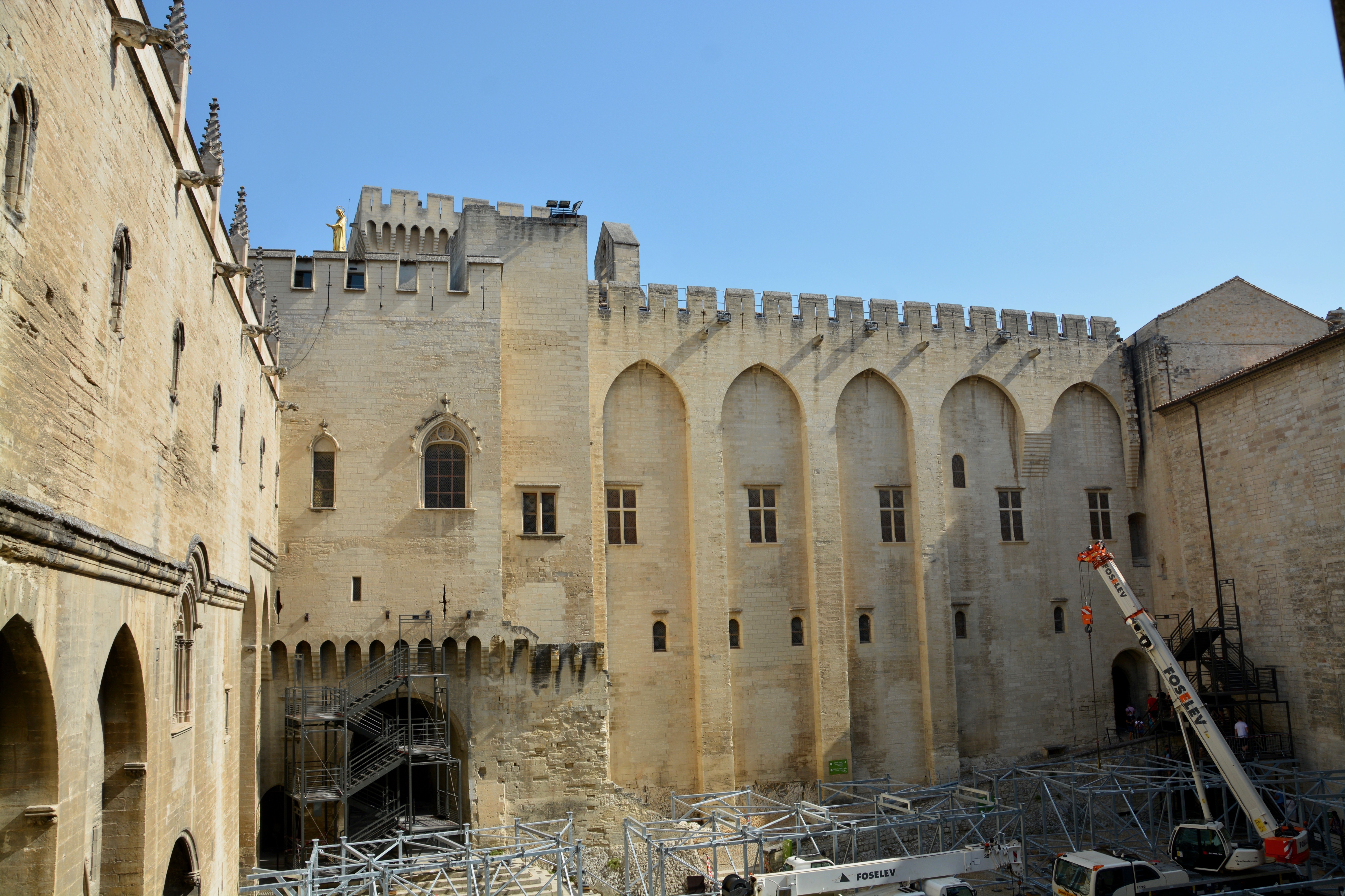 The Papal Curio was moved to Avalon in 1309 when violence broke out over the election to Clement V in 1305. The Palace is huge and does require that the visitor is able to navigate a number of stairs. It is incredibly hot and Boris would have been exhausted before we even made it inside. There is major construction going on in the courtyard and the navigation wasn’t direct.