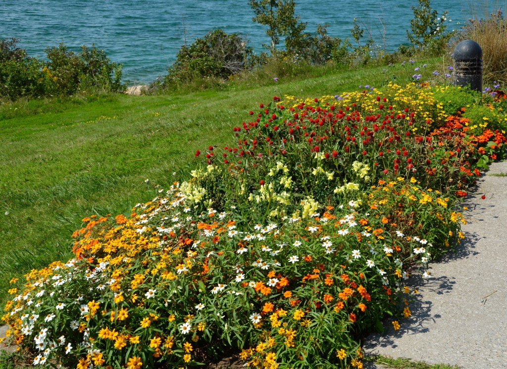 After we crossed, we went to a lookout point featuring a statue dedicated to the five men who lost their lives while building the bridge. Mom had known a girl who was engaged to one of them. The views from the park were spectacular. We also loved the wonderful flowers that were showcased at the park. It is far too hot at home for this sort of floral display. One of things I love about Michigan in the summer is the beautiful gardens.