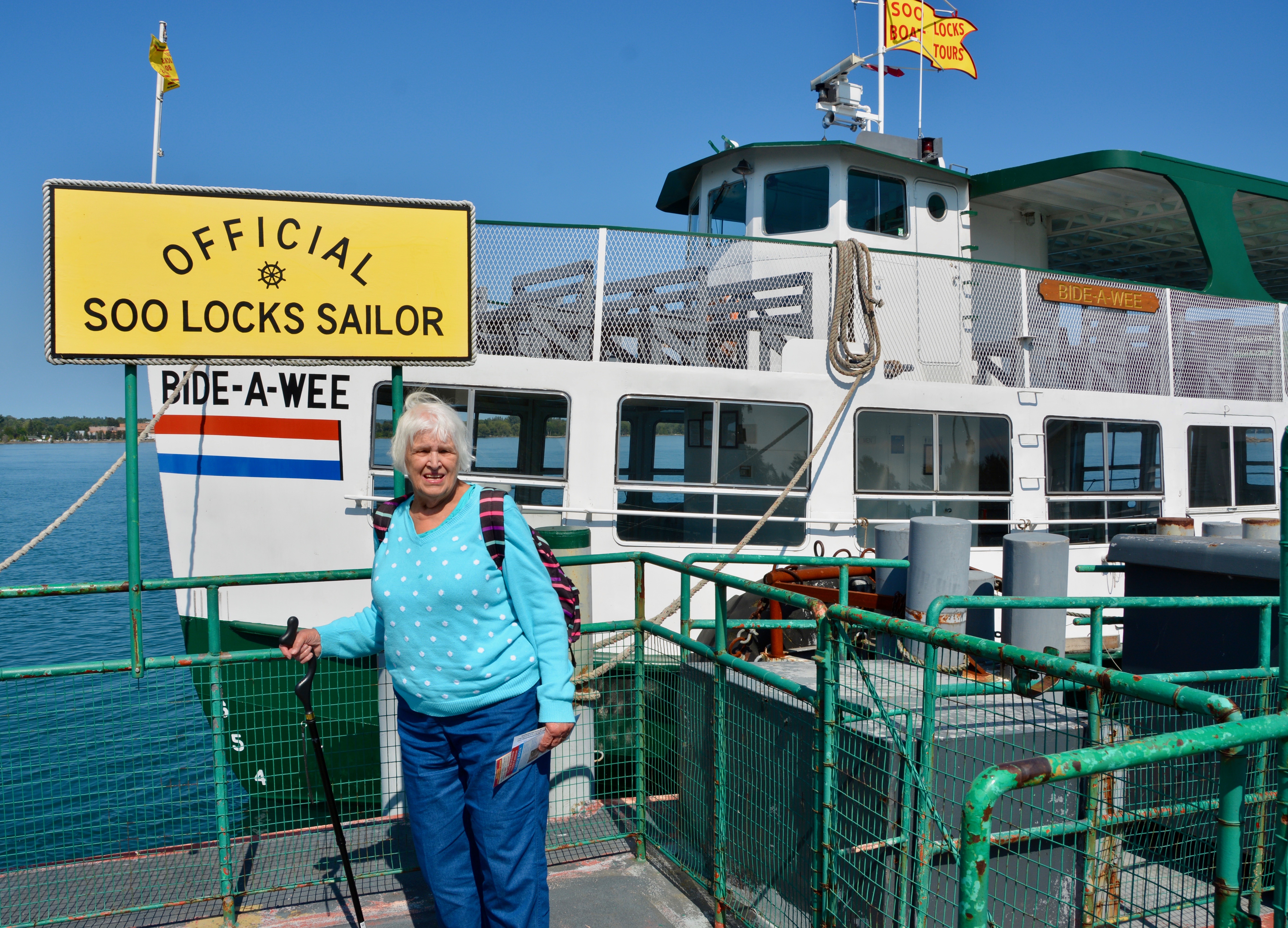 Emma did an early stop at Van’s bakery. My brother Jack had already done the oil change and filled up the car with gas the day before. After loading mom’s three pillows-neck, seat belt cushion, and footrest, the bakery goodies, and the rest of our luggage, we set off. We are going to take a bit of a scenic route, hoping to arrive in Sault Ste. Marie in time for the 3:30 pm tour. On this tour, you actually pass through the locks. After living in Texas, the driving distances just didn’t seem that far to me.