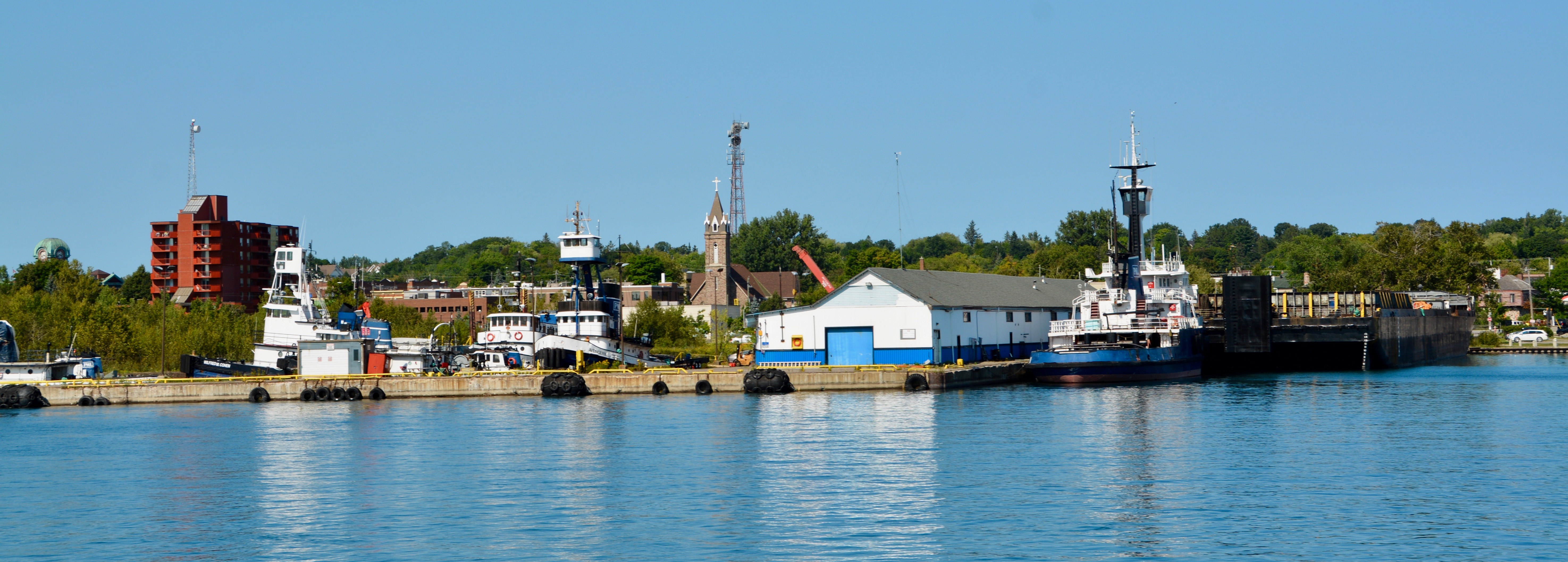 I have to admit that the Canadian side of the river was prettier. There was a manicured shoreline and a welcoming structure that reminded me of a circus tent. We also saw the Bushplane Museum. On the American side near our tour boat dock, we saw a bunker used to lift ships out of the water and facilitate repairs. There are also Coast Guard vessels and ships that assisted with the retrieval of the Edmund Fitzgerald of pop music fame.
