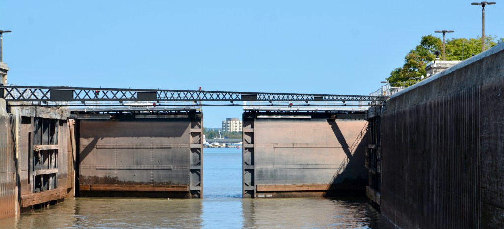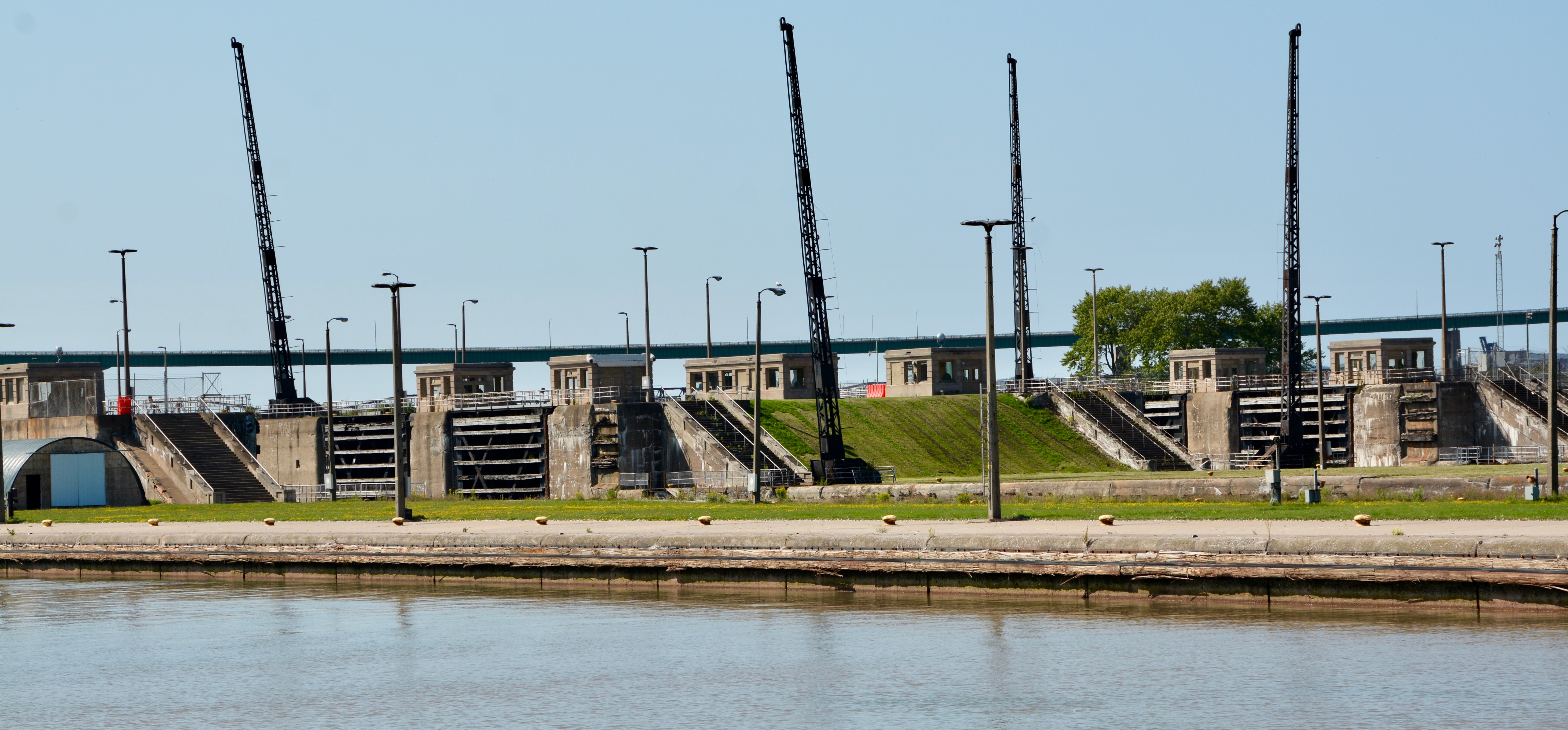 Traveling a little farther on the river, we were able to see operations at a large iron ore production facility. Our captain’s brother-in-law works there and the captain has had the opportunity to tour the facility. He shared that it is quite impressive. We also could see the Canadian lock used mostly for recreational watercraft which is currently not in operation. The tour operator is looking forward to its reopening and I wondered if perhaps the tours often go through that lock on one leg of the journey.