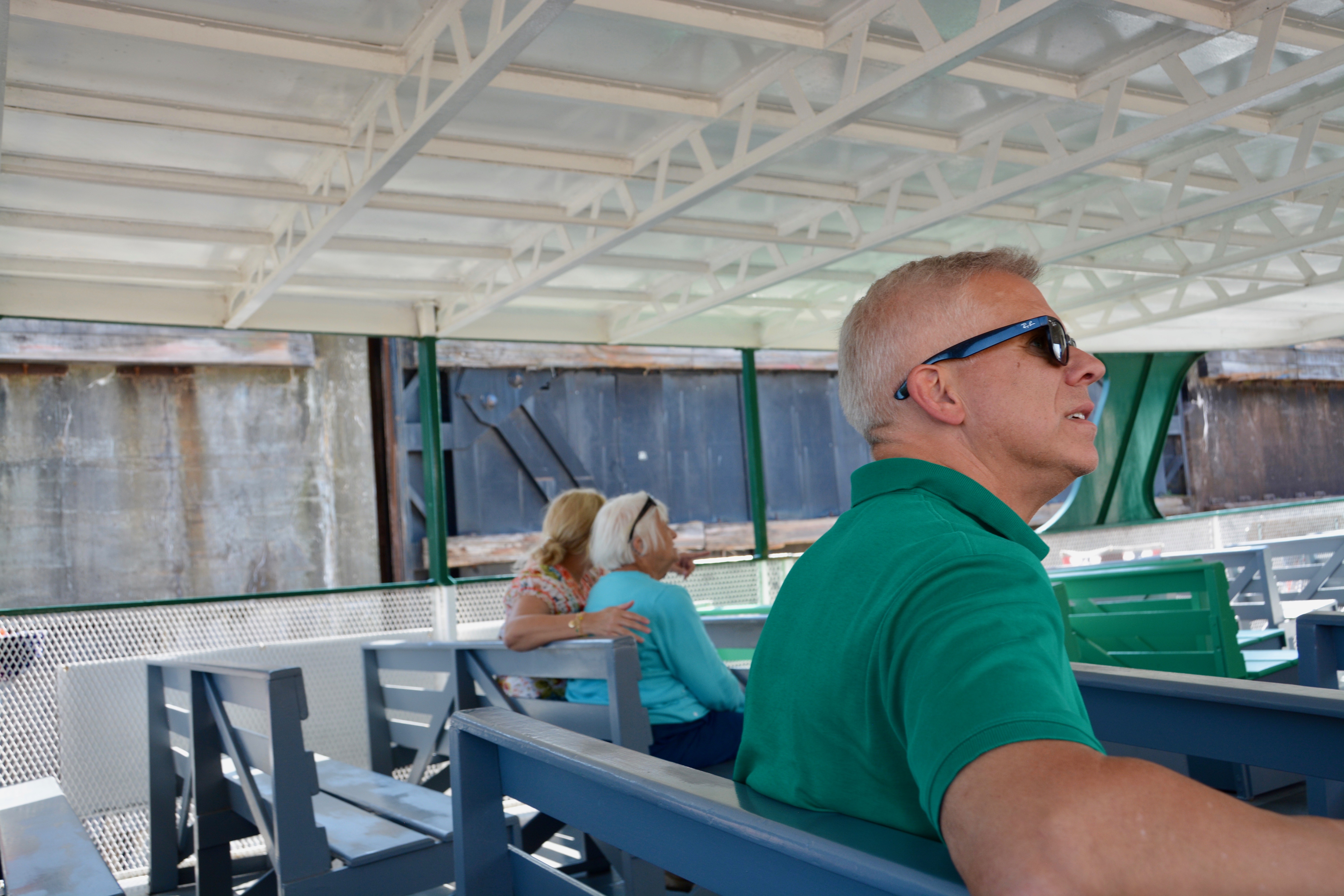 Mom and I got fried lake perch. This is one of her favorites and not something I can get back home in Texas. Emma and Jack got hot turkey sandwiches. After lunch we had just enough time to go back to the docks and board our boat for the 3:30 pm tour. It was a steep climb for mom, but we went to the boat’s upper deck for a better view. Many of the Michigan schools are back in session, so the crowd was lighter. Of course it was a weekday too. Our server at the cafe said that Sunday is the busiest day and Friday is the lightest. For the cafe, on Friday the locals clear out for the weekend before the tourists come in and the tourists have not yet arrived.