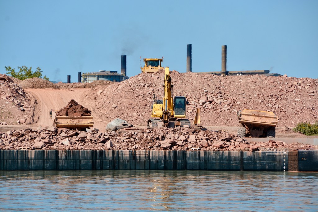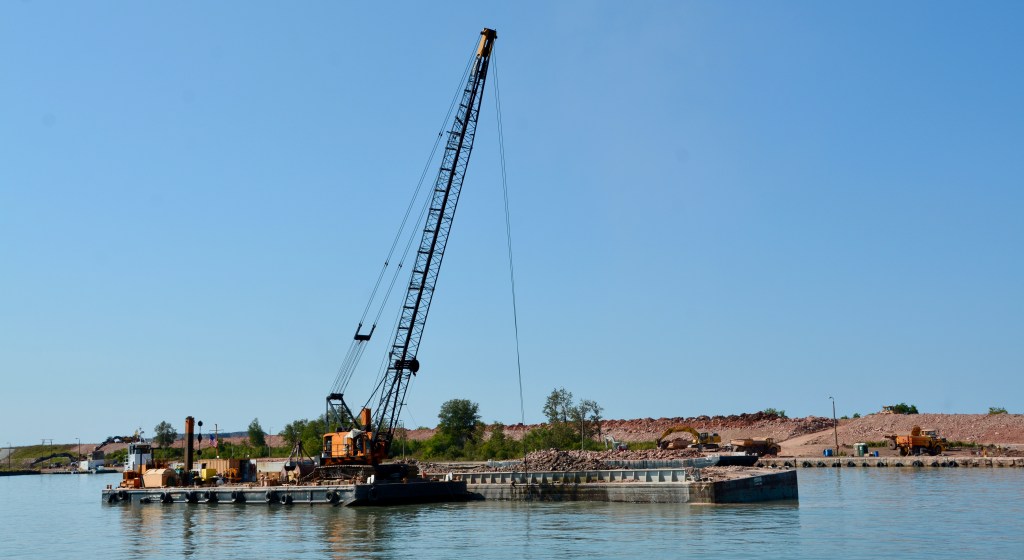 As we sailed out on the upper St. Mary’s River, we saw the dredging operations for the new deeper lock. Construction on the new lock is advancing, although I am not sure if the weather will halt work in the winter months or not.