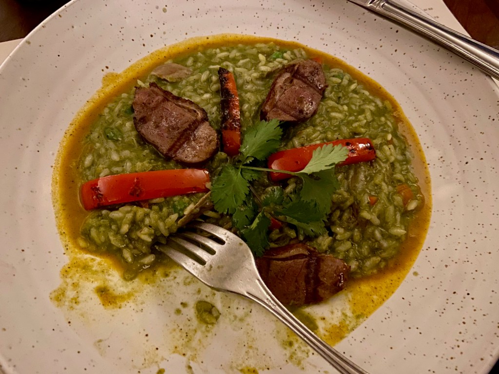 The restaurant seating is on a patio outside under a high canopy. Be sure to have reservations; the restaurant is very popular. The food and drinks were excellent. Of course, we started with the national drink, a Pisco sour. We each had three courses (more food than we needed) and multiple drinks and the bill was under $100. I had the parmesan crusted scallops and the lamb with Peruvian spiced risotto. I closed out the meal with caramel in a pecan shell pastry, one of the best desserts I ever had. It was a wonderful experience in a romantic setting.