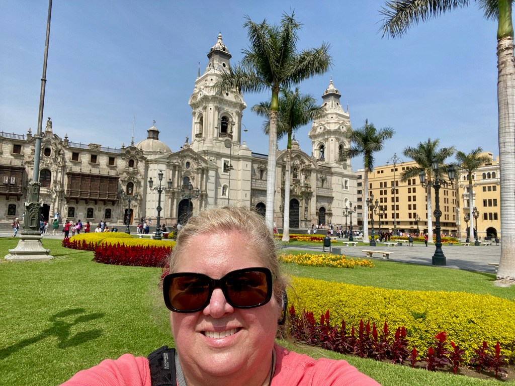 The next morning, we met up with our tour group after breakfast at the hotel. We had a brief orientation and then a city tour by bus. Of the 33 million people that live in Peru, 12 million live in the capital city of Lima. Carlos handled the first part of the city tour and then a local guide led us through the historical parts of the city. I was having a problem with my camera, constantly having to remove the memory card and replace it, but I got some wonderful pictures of the square and the even a dignitary in Amazonian tribal wear entering the government building. We made it back to the main square in time to even catch a bit of the changing of the guard.