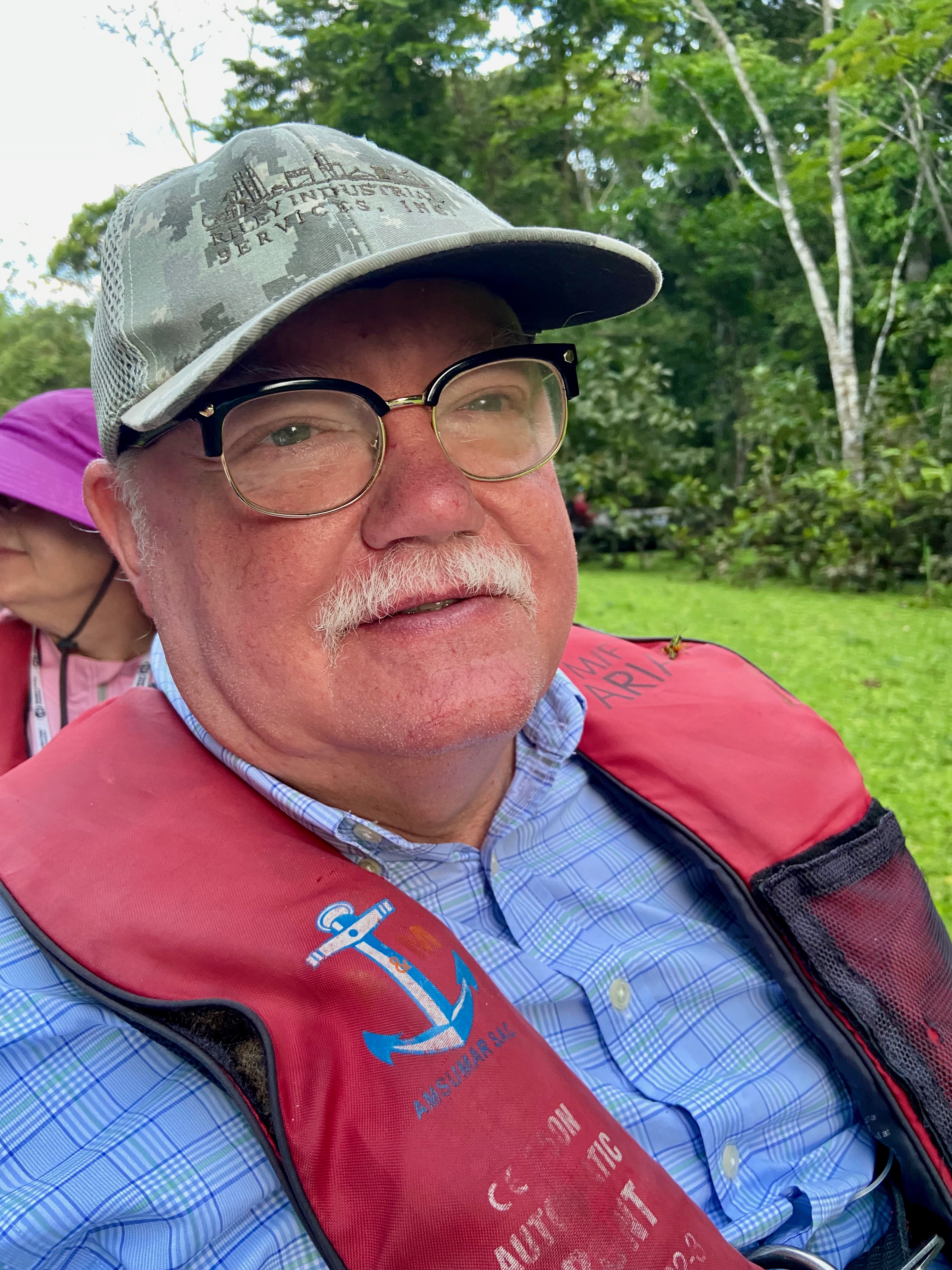 Anyone that wanted a chance got to hold the anaconda. I was a little skeptical, but Leslie, one of four Brits on board, said I should come up with him to take a turn. Staff held the head, Leslie had the tail. I got my photo. They brought the two ends pretty close to my face. The also had the snake along my back and I could feel it squeezing me. Not the most attractive photo, but it sure is funny. The video is even better; you can see the reaction grow. So glad I took the chance.