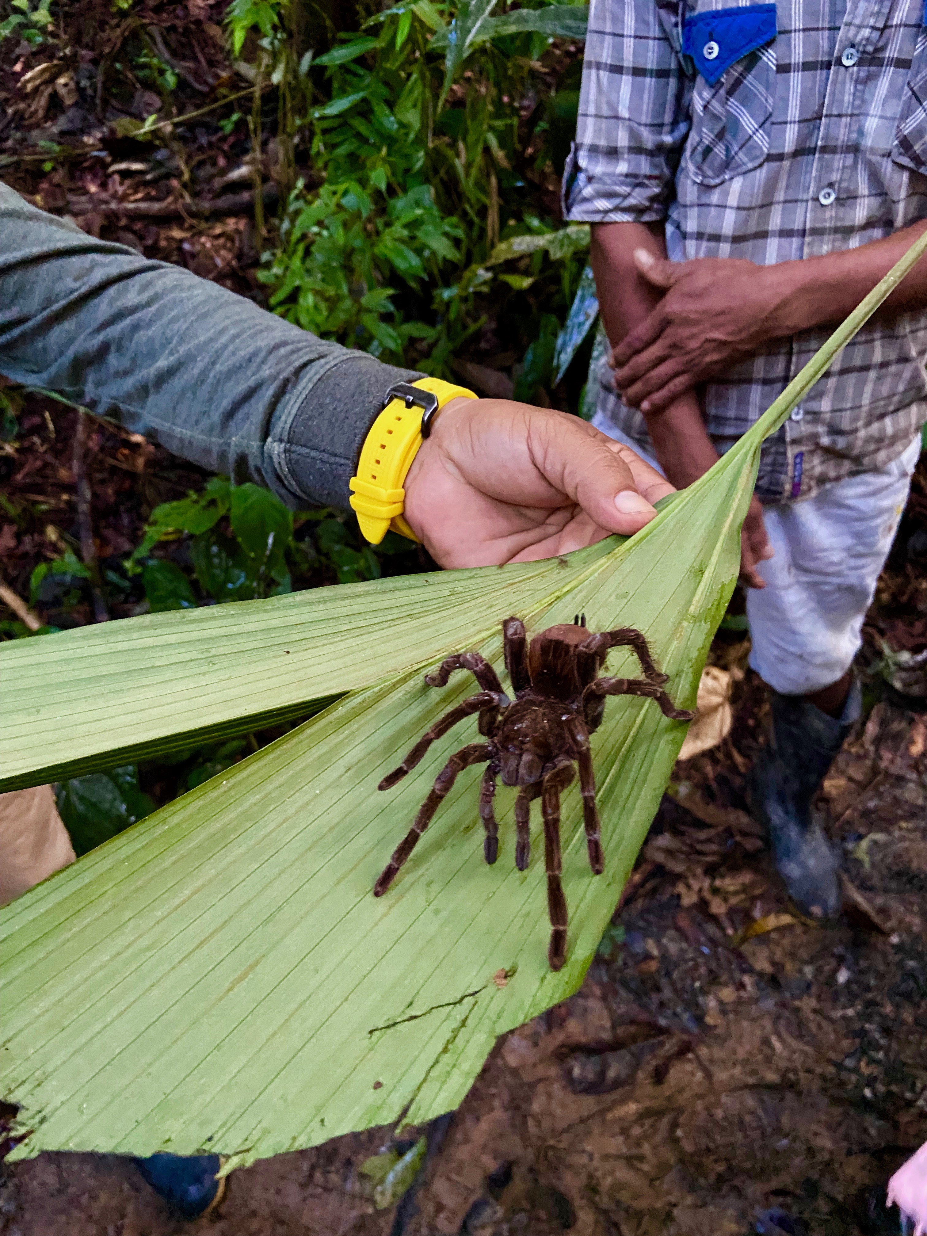 We had a local guide who found lots of interesting frogs for us in the jungle, along with a large tarantula. He worked with his machete, or his “second wife” as Billy likes to refer to these blades. We found out he is 80 years old. His hair is perfectly black and he moved with ease within the jungle. He put me to shame.