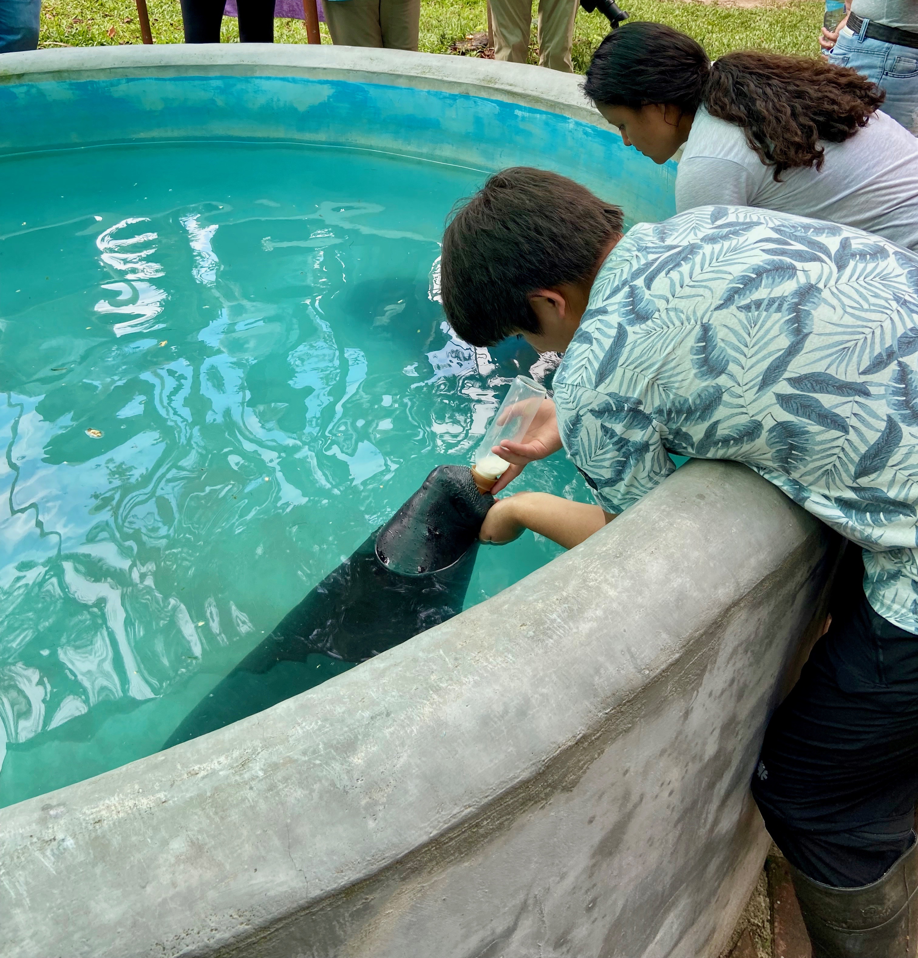 The goal of the center is to reintroduce the manatees into the wild. The last phase of the rehabilitation is a large pond where the manatees have no human interaction for one year before they are released into the Pacaya-Samiria Reserve that we have been touring. The protection they are afforded at the reserve gives them their best chance at survival. The rescue center is located on the road between Iquitos and Nauta.