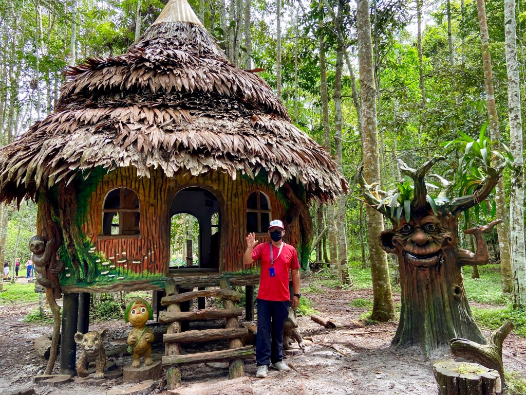 Beyond rehabilitation, the center’s secondary goal is education and a large part of the tour was visiting the grounds where educational presentations and play areas geared to children are located. The hope is to convince the next generation that manatees are not a food source. Manatees are not the only rescued animals at the center. We saw lots of monkeys, macaws, turtles, and even a sloth. One of the saddest creatures was an anteater whose leg had been intentionally broken so he couldn’t get away and could be kept as a pet. He did have an interesting set-up. His home looked like a doghouse and he ate and drank from pet bowls.