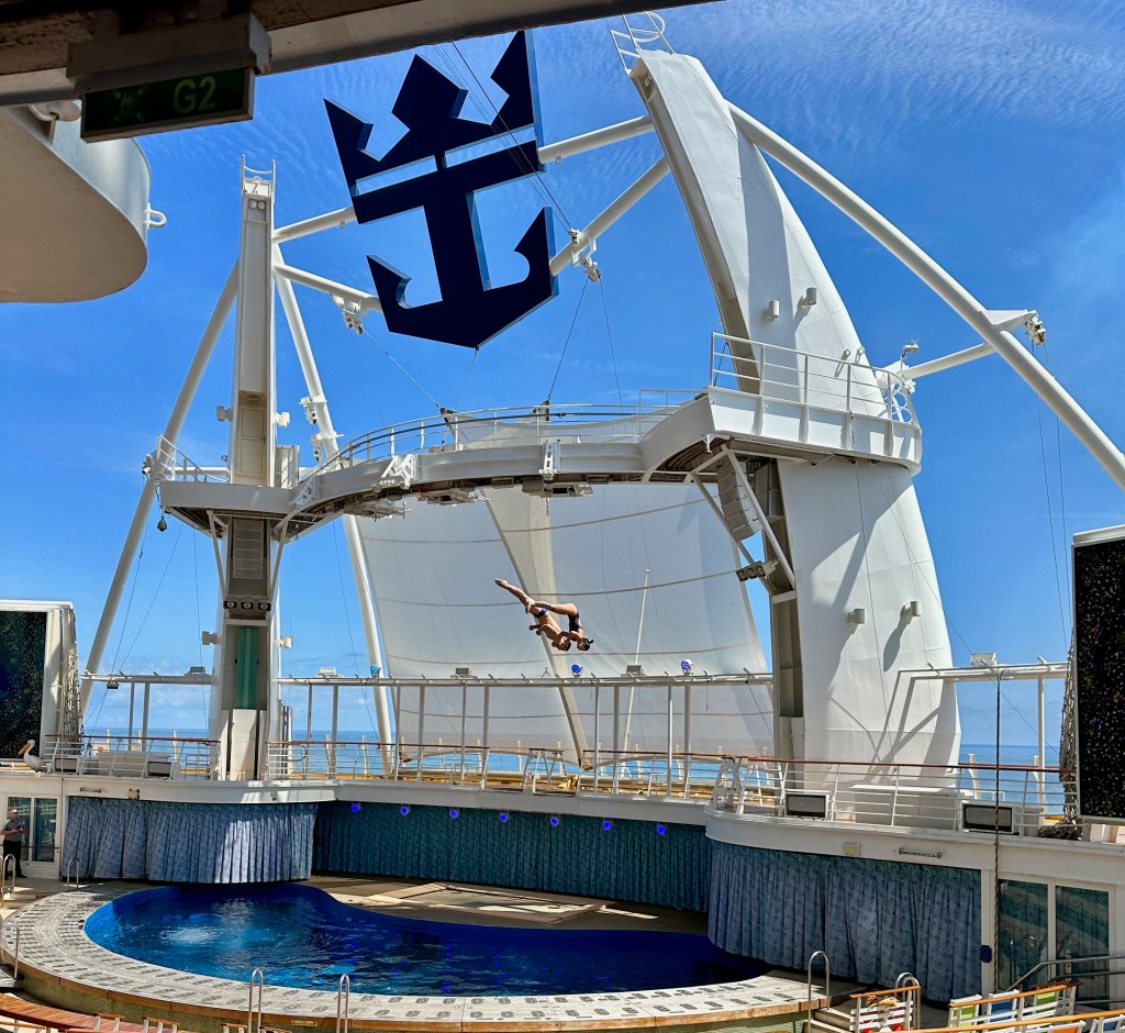 Our second night aboard was the water show with platform (some quite high) and springboard divers and acrobats in a water setting. Oceanaira was quite the show, although maybe a little overproduced. The aqua theater and the shows there are unique to the Oasis class ships.