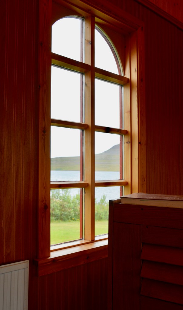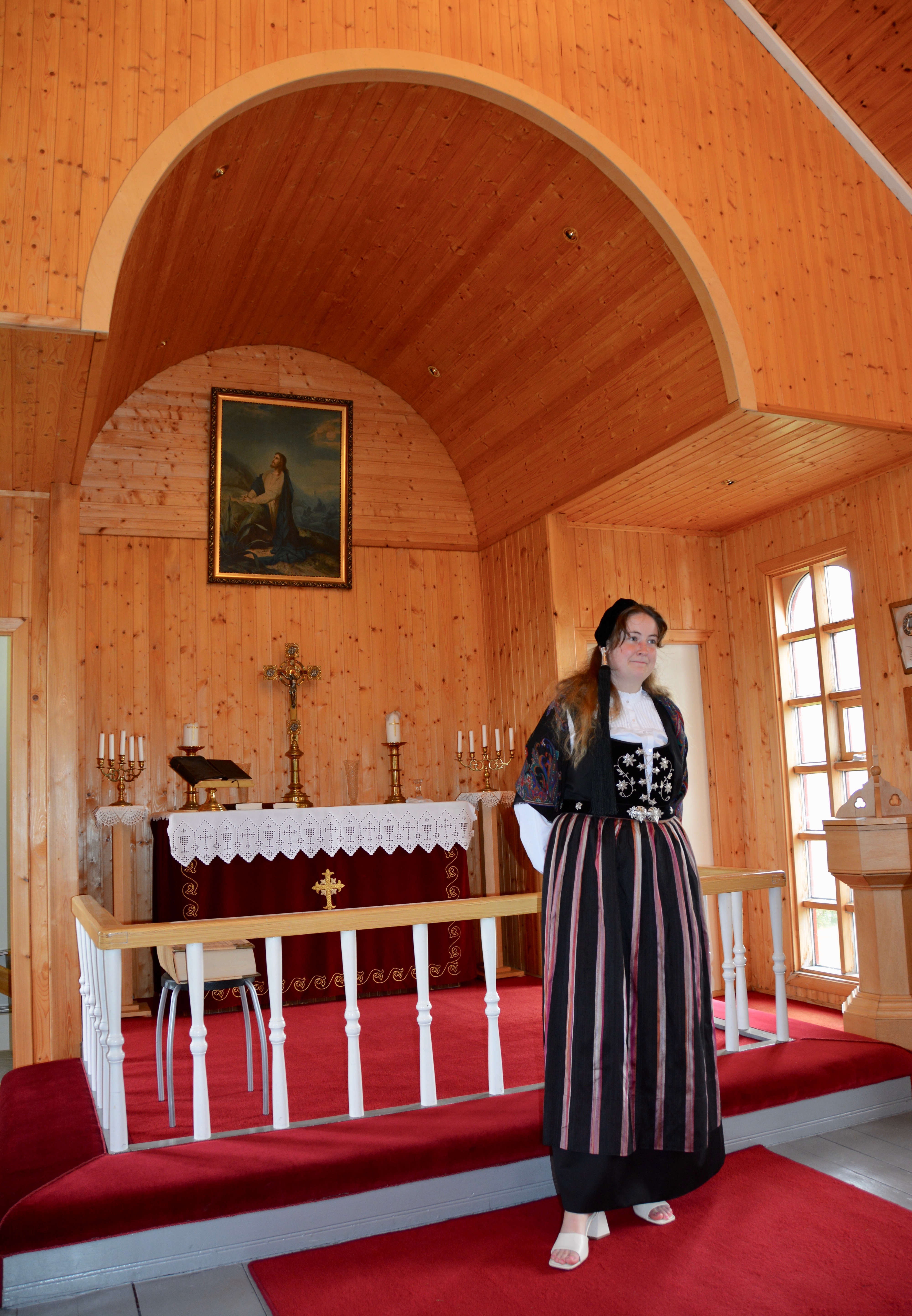 The church was simple, but beautiful inside and featured the lovely wood imported from Norway. One of the local residents was inside in original costume. The beautiful silver filigree clasps were fashioned by her grandmother. She sang three of the most popular local songs in the native tongue. The singer had a lovely voice. She said that moving the church to Sudavik is still considered controversial. Locally, it is known as the stolen church.