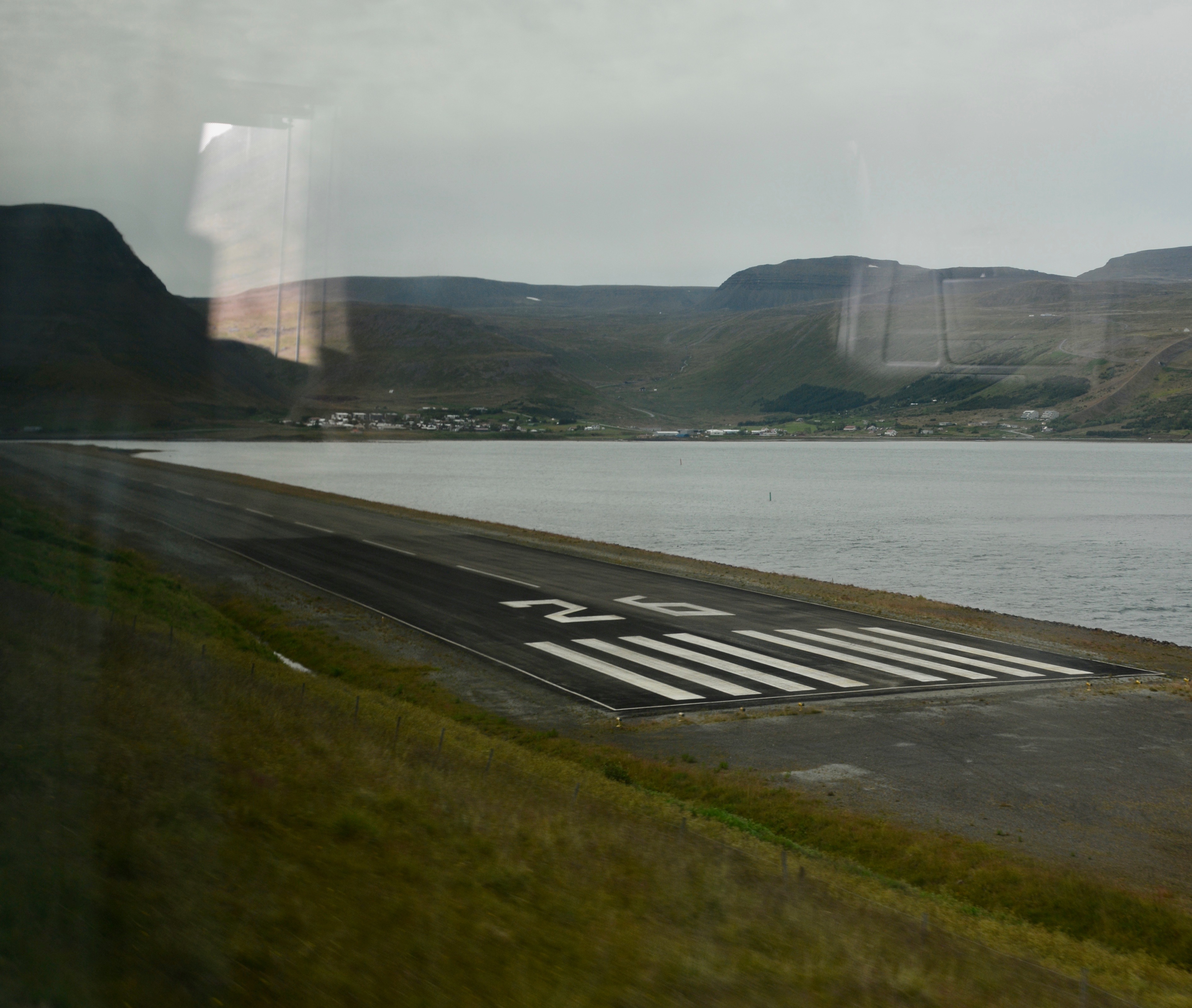 Returning back to the harbor at Isafjordur, from the bus window I got a picture of an airport runway that has to be one of the shortest I have ever seen. Our guide told us that about half the flights scheduled to land or take off here are cancelled due to high winds or other weather conditions. We also had a nice look at our ship at anchor with the birds in flight crossing the harbor.